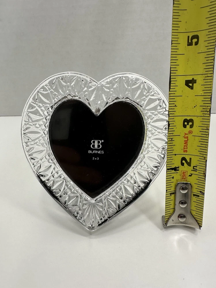 Burnes Clear Glass Heart Shaped Photo Frame With Easel 2”x3” Photo Size No chips or cracks.