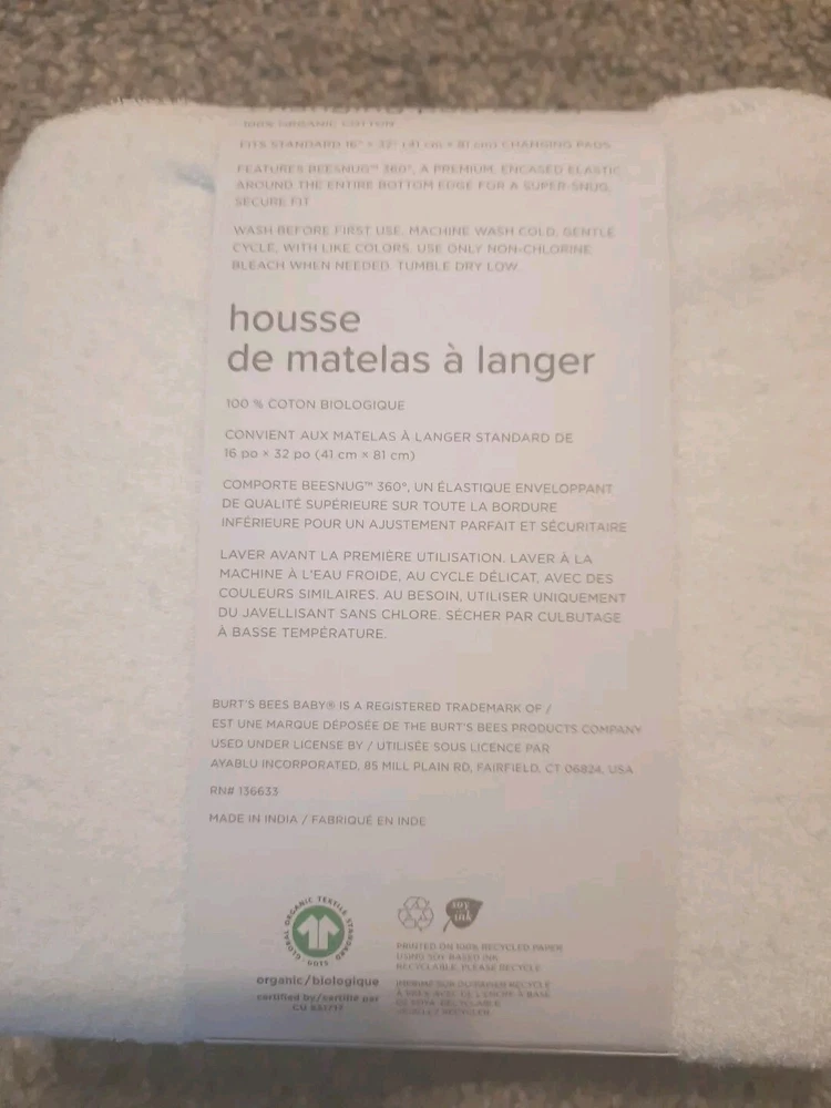 Burts Bees Changing Pad Cover New With Tags