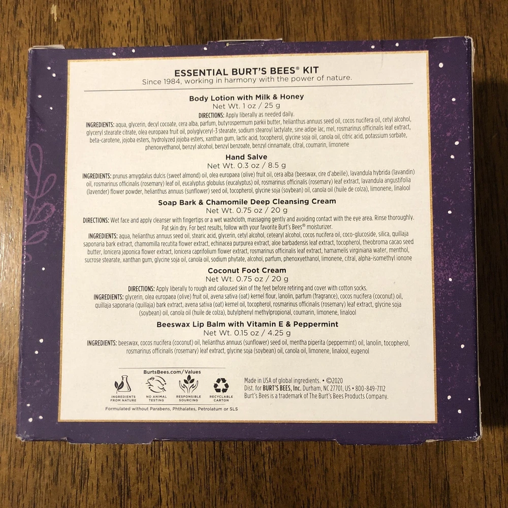 Burt's Bees Essentials Bees Kit NIB- BODY LOTION- HAND SALVE- COCONUT FOOT CREAM.