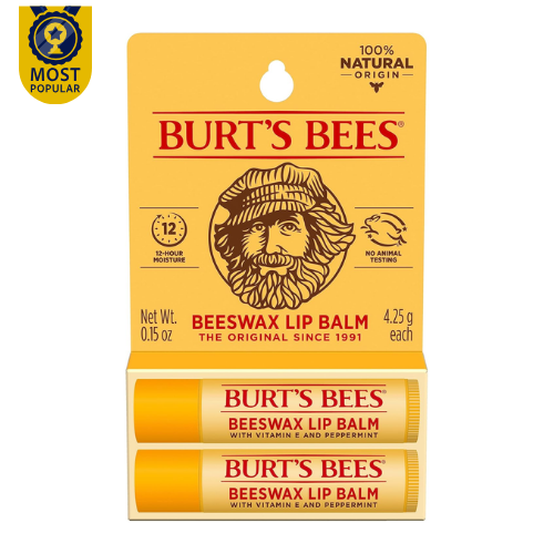 Burt's Bees Lip Balm - Original Beeswax, Lip Moisturizer With Responsibly Sourced Beeswax, Tint-Free, Natural Origin Conditioning Treatment, 2 Tubes, 0.15 oz. EASTER BASKET STUFFERS: Bursting with minty freshness, this Burt's Bees Beeswax Moisturizing Lip Balm refreshes and nourishes your lips with every swipe; Package may vary COOLING COMFORT: Made with responsibly sourced Beeswax plus Vitamin E and a hint of peppermint oil, Original Beeswax lip balm hydrates and nourishes dry lips " MATTE FINISH: Just one swipe of this conditioning lip balm leaves your lips smooth and refreshed, while a tint-free matte finish beautifies and revitalizes lips 100% NATURAL ORIGIN: This natural origin lip balm is formulated without parabens, phthalates, petrolatum or SLS and comes in a tube made with 70% recycled and plant-based plastic BURT’S BEES LIP CARE: Naturally beautify and revitalize your lips with Original Beeswax, the must-have classic lip balm beloved by fans everywhere Product Description Burts Bees lip balm nourishes and makes your lips feel luxurious. Infused with power packed Beeswax and antioxidant Vitamin E to condition skin and richly moisturize and soften lips, this lip balm nourishes dry lips while keeping them revitalized and hydrated. With a matte finish and moisturizing balm texture, the Original Beeswax lip balm glides on smoothly with a hint of Peppermint Oil that leaves your lips with a refreshing tingle. Conveniently tuck this tube into a pocket or purse, so that you can keep naturally derived, nurturing lip care handy. This 100% natural origin beauty product is free of parabens, phthalates, petrolatum and SLS and will beautify and revitalize your lips. We designed the hybrid tube with 70% recycled and plant-based plastic, all recyclable through TerraCycle. The key components of our plant-based plastic originate from corn starch and recovered potato scraps and is FDA-compliant food grade. Use this natural origin Burt's Bees Moisturizing Lip Balm to make lips feel their best. Brand : Burt's Bees Item Form : Cream Finish Type : Natural Skin Type : Dry Color : White Product Dimensions : 2.78 x 0.75 x 4.45 inches; 0.01 ounces Manufacturer : Burt's Bees Country of Origin : USA Safety Information No warning applicable. Ingredients cera alba (beeswax, cire d'abeille), cocos nucifera (coconut) oil, helianthus annuus (sunflower) seed oil, mentha piperita (peppermint) oil, lanolin, tocopherol, rosmarinus officinalis (rosemary) leaf extract, glycine soja (soybean) oil, canola oil (huile de colza), limonene. Directions Apply lip balm liberally to your lips as often as needed, particularly in dry, cold or windy conditions.