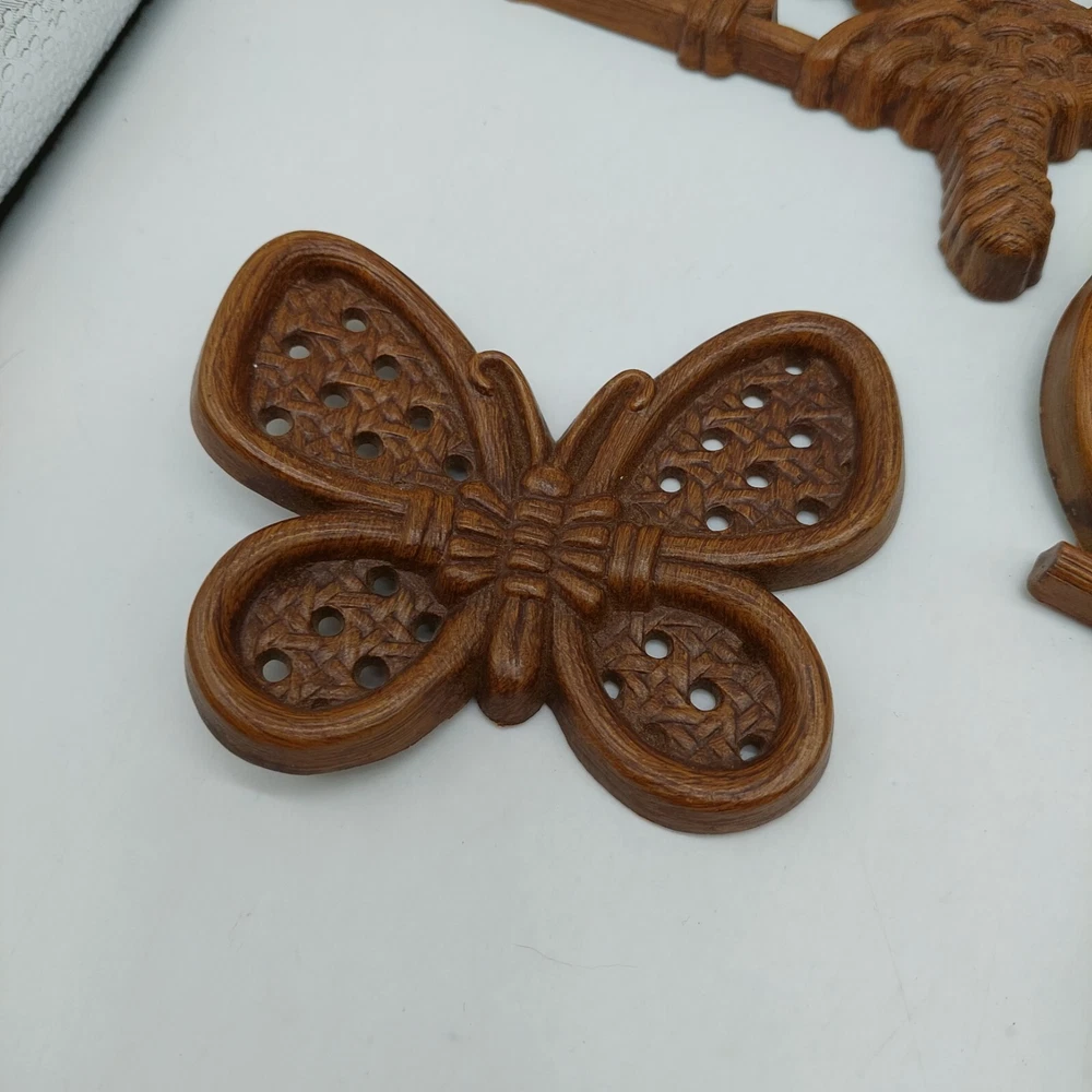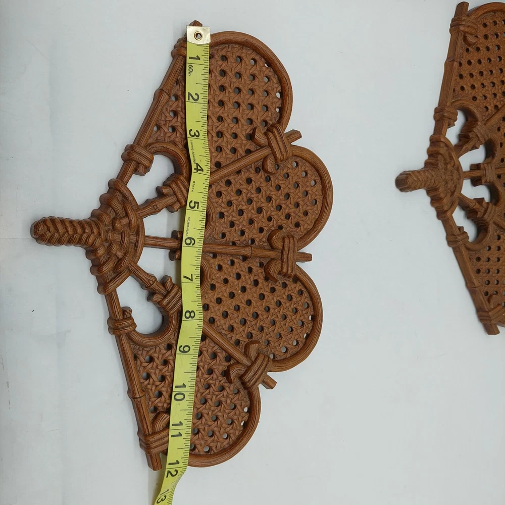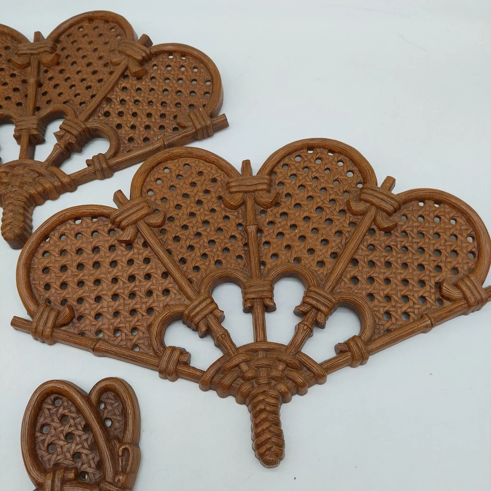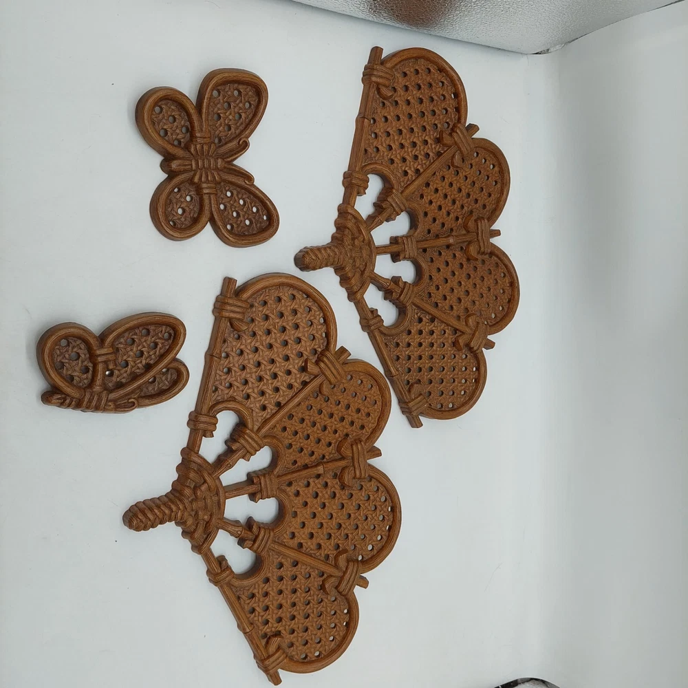 Burwood Wall Fans & Butterflies Hanging Plaques Brown Vintage Wicker Design
