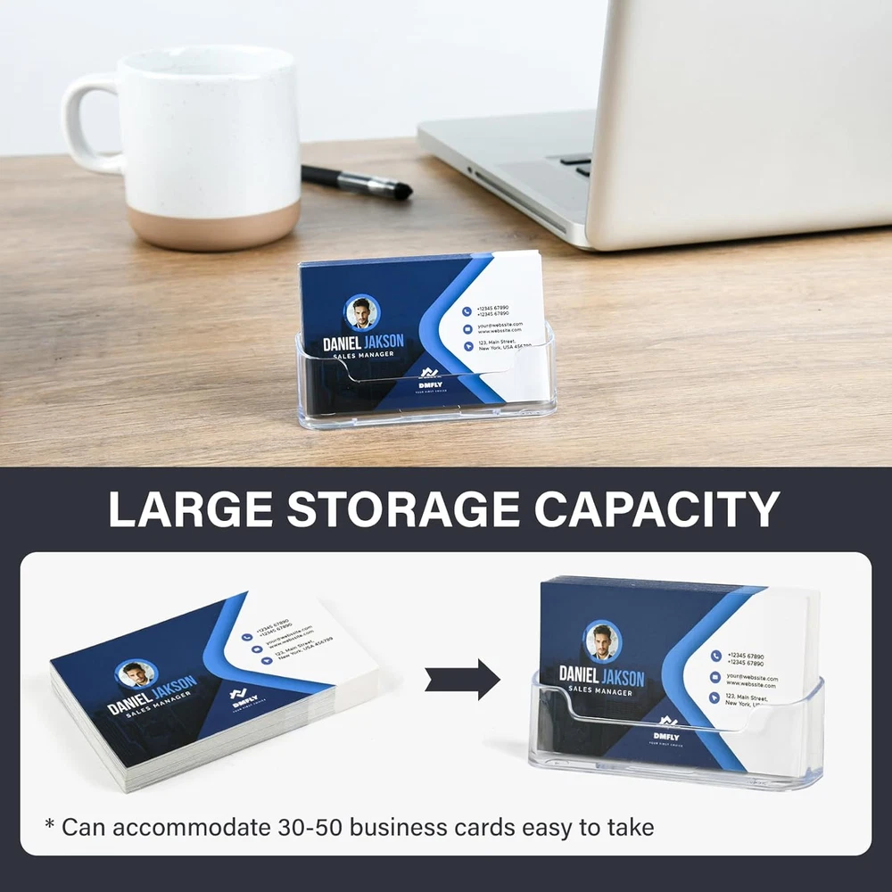Store New Arrivals Add to Favorite View Feedback Contact Business Card Holder for Desk - 4 Pack Acrylic Business Card Holder Stand Display Plastic, Desktop Business Card Holders for Exhibition, Home & Office, Fits 30-50 Business Cards Description Unit Count 4 Count Batteries Required? No Finish Glossy Item Package Quantity 1 Part Number bchd-4 Color Clear Product Dimensions 3.8"L x 1.4"W x 1.97"H Material Acrylic Item Weight 0.11 Kilograms Manufacturer DMFLY Batteries Included? No Size 4 Pack Finish Type Glossy Brand DMFLY Number Of Pieces 4 Material: DMFLY Business Card Holder Desk made of high-quality acrylic material - Sturdy, more clear. Large Capacity: Our Business Card Holder Stand size: L3.8xW1.4xH1.97 inches, the single compartment can hold up to 30 - 50 business cards, depending on the card thickness. Why Choose Us? Our Acrylic Business Card Holder uses European and American Streamlined Design, which is more aesthetic and professional, compatible with more scenes, like office desk, company front desk, exhibition desk, conference desk, etc. Strong Support Feet: Compare to other similar items, Our business card holder desktop comes with strong support feet - More stable and durable, not easy to fall down. Safe Packaging and Multiple Packs: DMFLY Clear business card holder Packing - Each product is put into a separate plastic bag, and then put together into a customized size kraft carton, not easy damage the product. Multiple Packs - can be used by yourself, or send to friends, family, and colleagues are all good choices. As a boss, this is also a good gift for employees. Product Description DMFLY Acrylic Business Card Holder is your desk's nice decoration. DMFLY Acrylic Business Card Holder New design appearance Our advantage: 1, Uses European and American Streamlined Design - Make a great first impression on customers 2, Large Capacity - hold up to 30 - 50 business cards, depending on the card thickness. 3, Wide Use - office desk, company front desk, exhibition desk, conference desk, etc. 4, Premium Material - high-quality thicker acrylic - Clear 5, Rounded corner design is more beautiful Product specifications Capacity: 30-50 cards Size: L3.8'' x W1.4'' x H1.9'' Material: Acrylic Model: Arc design Function: Display cards Color: Clear Package: Multiple Pack Can be as: Business gifts ABOUT US We offer the best prices around on high quality products. Our E-store includes media such as books, movies, music and games while offering electronics, toys, sporting apparel, clothing, tools, general home, garden items and more. SHIPPING We are always working hard to ensure your package arrives as soon as possible. Please understand that some factors like weather, high postal traffic, and the performance of shipping companies are outside of our control. We offer free shipping to the lower 48 states and ship within 2 business days of payment, usually sooner. We do not accept P.O. Boxes. Please provide a physical address. RETURNS We offer a 30-Day Return Policy on items which you are not completely satisfied with. You have the option for a full-refund or an exchange of the item. No returns are available on items shipped outside of the USA. PAYMENT We accept PayPal. CONTACT US This page content is yet to come Please ad us to your favorite seller and visit again later Thank You CUSTOMER SATISFACTION We try our very best to make sure every customer is completely satisfied. If there's a problem, message us! We're happy to help.
