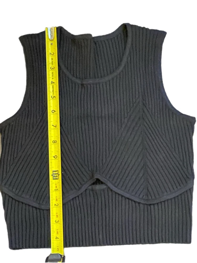 Fabric Type: Knit Brand: Unbranded Accents: Keyhole Department: Women Color: Black Theme: 90s, Y2K Material: Polyester, Nylon, Viscose Fit: Regular Vintage: No Handmade: No Strap Type: Wide Strap Occasion: Party/Cocktail, Casual Closure: Pullover Pattern: Solid Personalize: No Type: Tank Features: Stretch, Ribbed Size Type: Regular Garment Care: Hand Wash Only Style: Cropped Character: None Country/Region of Manufacture: China Sleeve Length: Sleeveless Sleeve Type: Sleeveless Size: XL Neckline: Round Neck Season: Fall, Winter