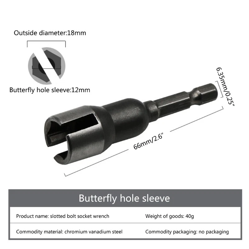 Features: Brand new and high quality This wing nut driver is designed to tighten or loosen wing nuts, bolts, hooks quickly and effectively when installing hurricane-shutters/panels, helps you get the job faster and saves lots of your energy. Just put it in an electric screwdriver and use it,can protect your hand from damage caused by using other tools,5x faster than hand to screw. This wing nut driver is a practical tool,it can be used with most electric drill or electric screwdriver (1/4 inch shank).It is a good helper when we working. Made-of steel, strong and reliable, has a long service life. Positioning bit helps you fix the screw exactly in place without worrying about wobbling or misdirection. Speed up the process of twisting screws so you can work more efficiently and easily. Specifications: Material:CR-V Weight: 42g Length: Approx.65mm/2.56inches Package Includes: 1x Butterfly Bolt Socket note: 1.Please allow 1-2cm errors due to manual measurement, make sure that you do not mind before you order. 2.Due to the difference between different monitors, the picture may not reflect the actual color of the item.