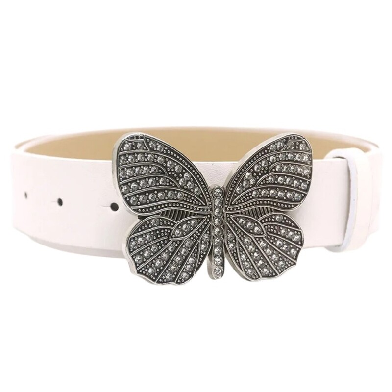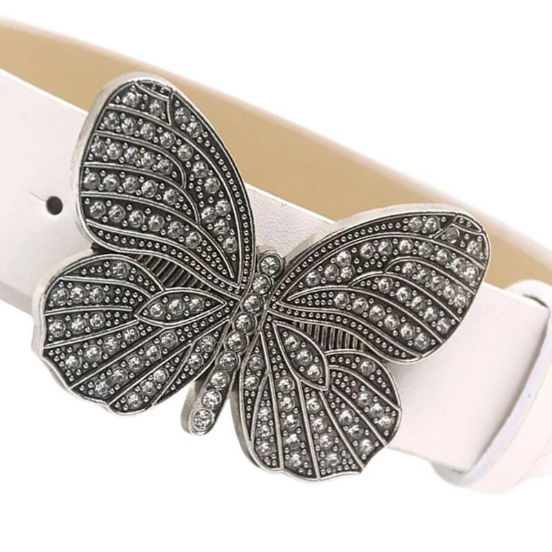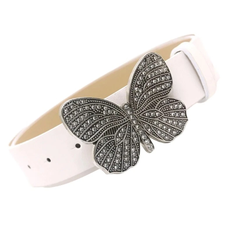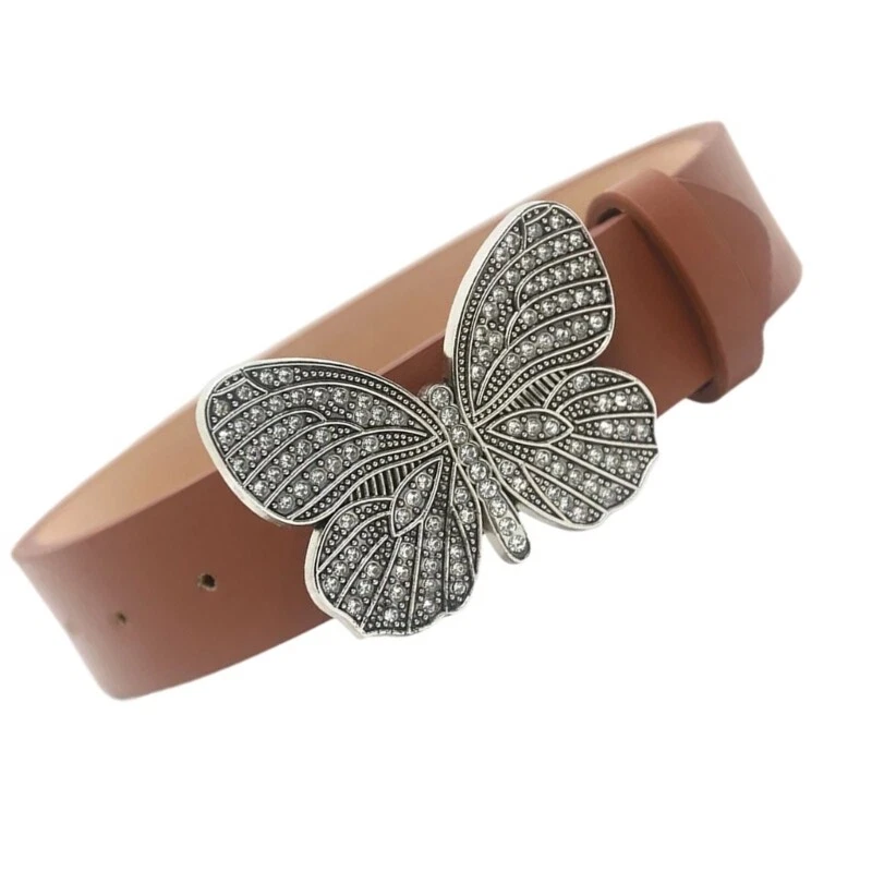 Butterfly Buckle Belts PU Leather Belt Teen Jeans Skirt Decorative Belt Features: Our butterfly buckle belt with rhinestones add sophistication to any outfit. Crafted from pu leather, our belt is fashionable and adjustable for different waist sizes. for fashion forward women who want item. Suitable for parties, dinners, and weddings, our belt enhances your look. Make a statement with our embellished butterfly buckle belt. Specifications: Texture: PU Size: 105x3.2cm/ 41.34x1.26in Color: Black Color, White, 1, Light Brown Package Includes: 1pc PU Belt note: 1: Please allow 1-2cm errors due to manual measurement, ensures that you not mind before you order. 2: Due to the differences between different monitors, the picture may not reflect the actual color of the item.