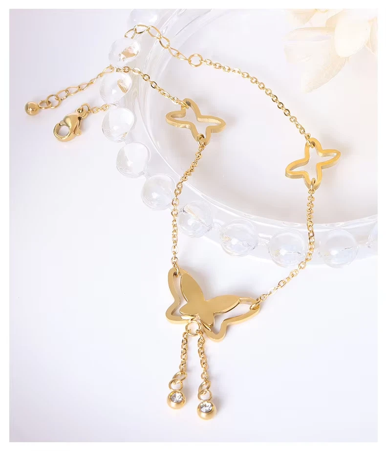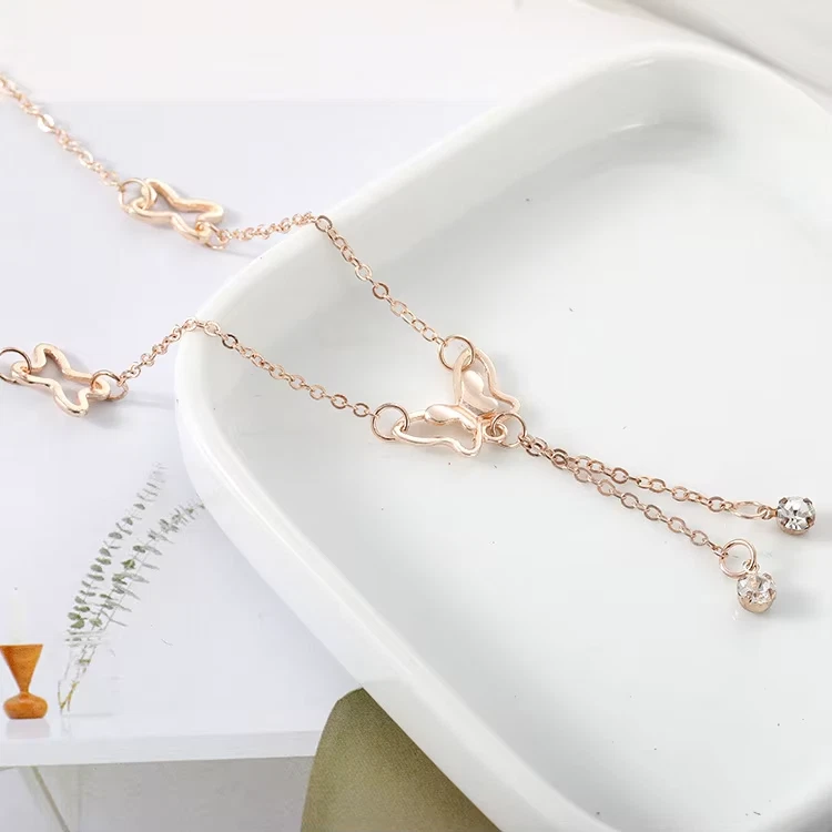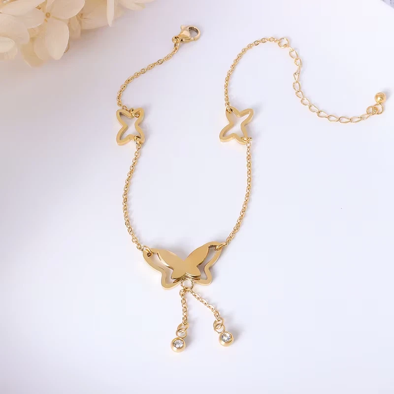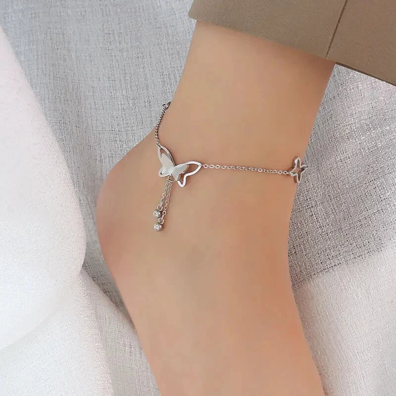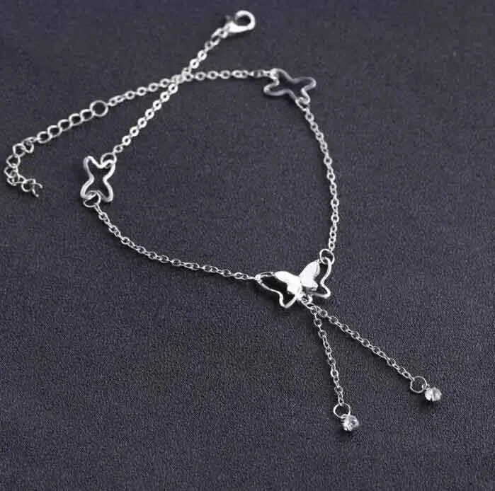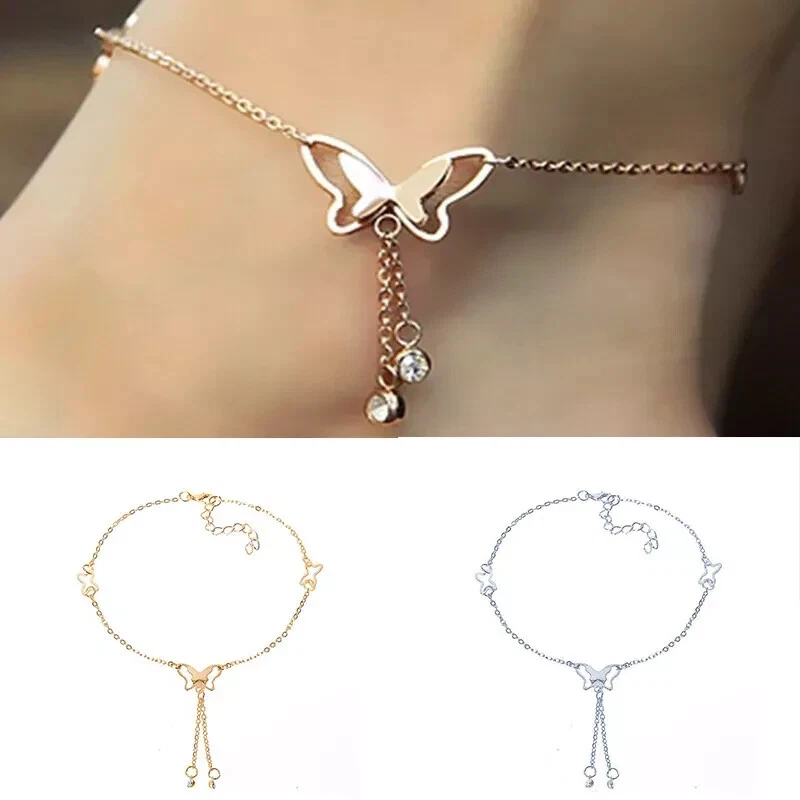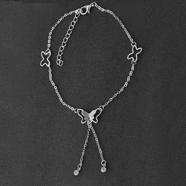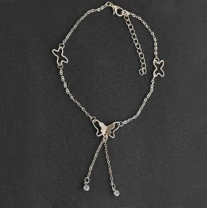 Butterfly Pendant Anklets Foot Chain Summer Tassel Rhinestone Beach Leg Bracelet Handmade Anklet Gold Silver Color Jewelry SPECIFICS: Condition: 100% Brand New Material: Stainless Steel/Cubic Zirconia/Alloy Craft: Gold/Silver Plated Length: 7.8'' + 2"(extended chain)/20+5cm Color: Gold/Silver Plated Package: 1*Anklet