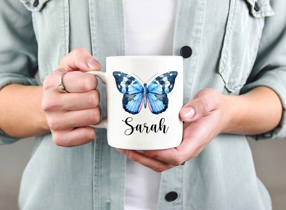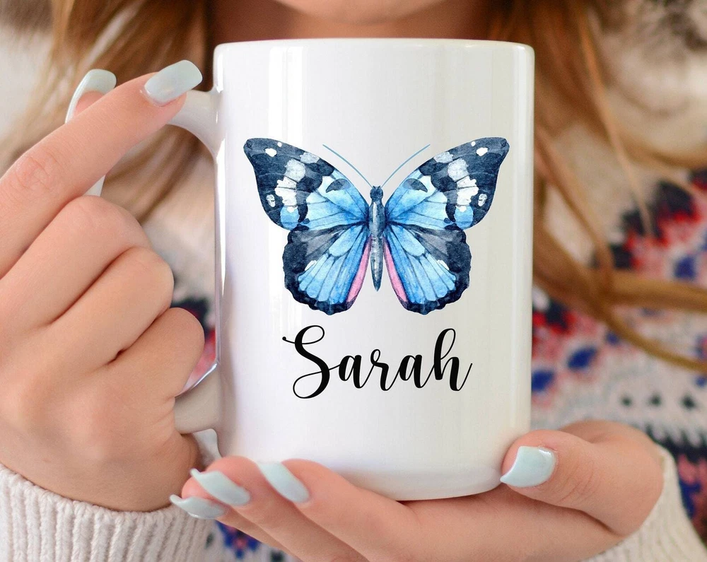 Butterfly Mug Coffee Mug Name Mug Butterfly Gifts For Her Coffee Cup With Name Product Details.. This high quality 11oz. ceramic white mug has a premium hard coat that provides crisp and vibrant color reproduction sure to last for years. Perfect for all hot & cold beverages. The highest quality printing possible is used. It will never fade no matter how many times you wash it. Material: 100% Ceramic. Print both sides. Dishwasher and Microwave Safe. High Gloss + Premium White Finish. Printed in the U.S.A. Personalized & Custom. We support personalized and custom mug to add custom, when placing an order, you can add notes to the "order note" in shipping address section. Also you can contact us directly via message. Shipping Info. Ready to ship in 1 to 2 business days, All products are made-to-order and proudly printed in the United States. Shipped by USPS and DHL, You will receive your order in 5-7 days. Replace & Refund. All products are defective during shipping broken, chipped will be replaced free of charge. You are not satisfied with the product, we will refund 100% money to you. If any other issues arise, please do not hesitate to message, we would be more than happy to assist you.