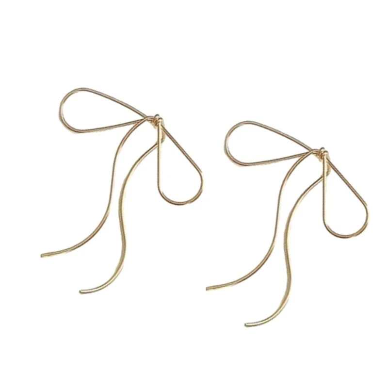 Features: These trendy bowknot earrings will make you stand out from the crowd. for adding a touch of to any outfit. Crafted from high alloy, these earrings are durable and long lasting. The golden color metal line adds a touch of sophistication. Designed for individuals who appreciate simple yet stylish accessories. These earrings are for those who want to show their unique fashion Whether it's a party, wedding, birthday, anniversary, or just daily wear, these earrings are versatile enough to be worn on any occasion. They will instantly elevates your look and make you feel confident and beautiful. Add a touch of vintage charm to your jewelry collection with these elegant earrings. Their attention to detail and stylish craftsmanship make them a must have accessory for any fashion enthusiast. Specifications: Alloy Color:Gold Weight:Approx.4 Size:Approx.4x5cm/1.57x1.96inch Package Includes: 1 Pair Earrings note: 1.Please allow 1-2cm errors due to manual measurement, make sure that you do not mind before you order. 2.Due to the difference between different monitors, the picture may not reflect the actual color of the item.