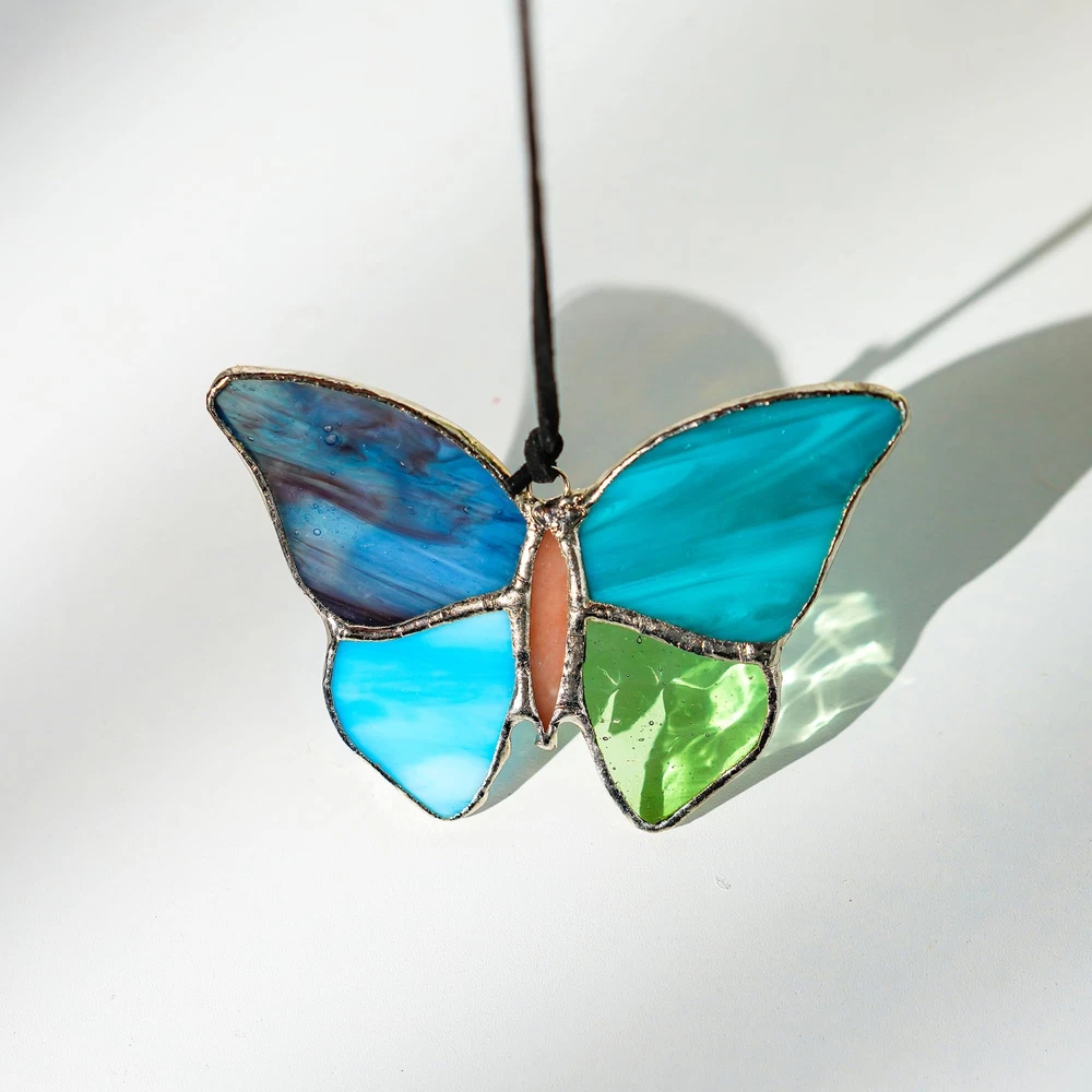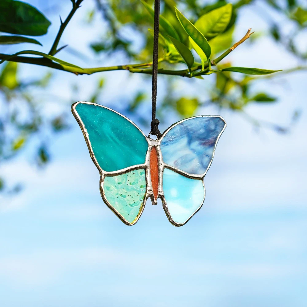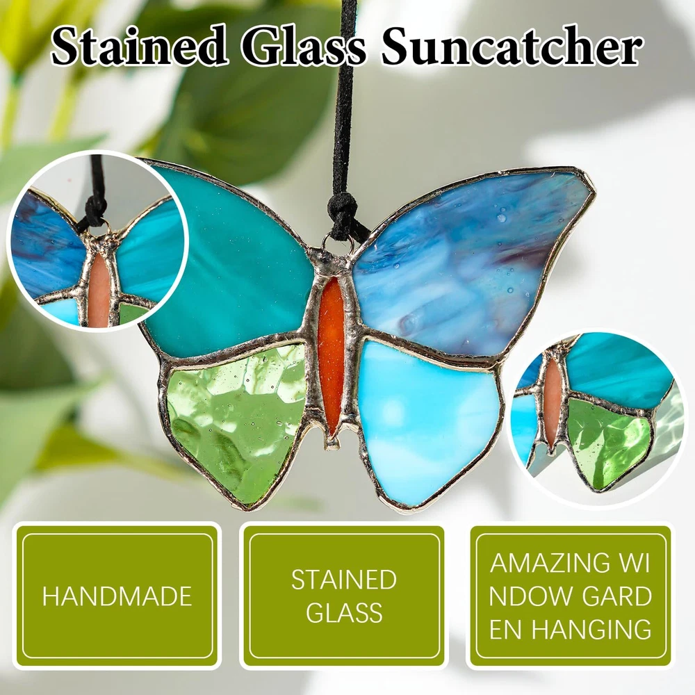 Handmade Art Butterfly Panels: Butterfly ornament is made of several beautiful stained glass pieces. These real glasses are cut according to the design, then soldered together. Each glass butterfly is handmade and unique Multiple Applications: Butterfly stained glass panels will show different colors in different lighting conditions. When the sunlight comes through, you can get colorful sunshine on the windows or walls,and instant adds color and cheer to any room Stained Glass Window Hangings Surprised Gift: This stained glass art butterfly panels is helpful for your home decoration. Meanwhile, it is also a creative gift for dad, mom, grandpa, grandma, sister, friends, teachers, classmates, colleagues, animal lovers, etc. Perfect for an anniversary, housewarming, birthday or any occasion as a present Easy To Hang: This product is 3.7*2.6 in which is absolutely suitable to be hung on the window and wall or any place you want there to be amazing. Coming with a rope for quick and easy hanging Service: If you have any questions about our stained glass panels, please feel free to tell us. We strive to provide you with the best quality product and the best service