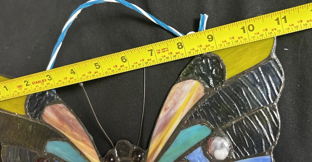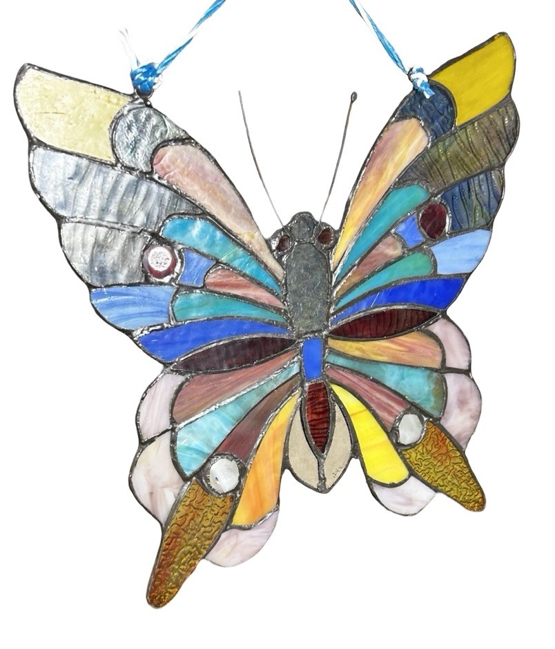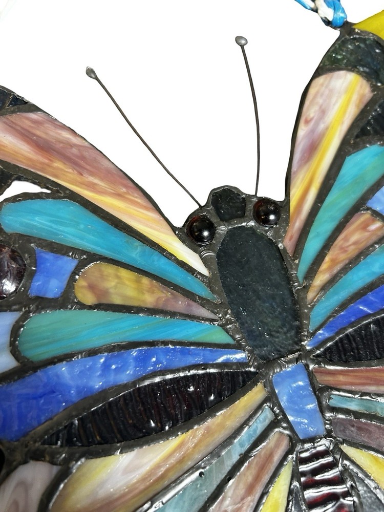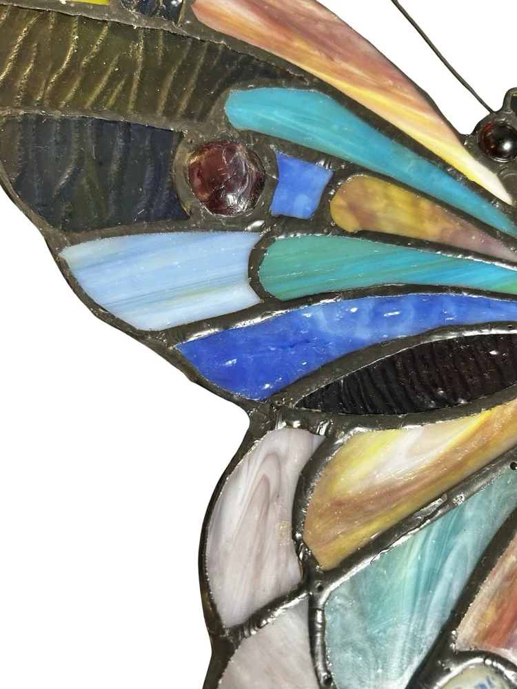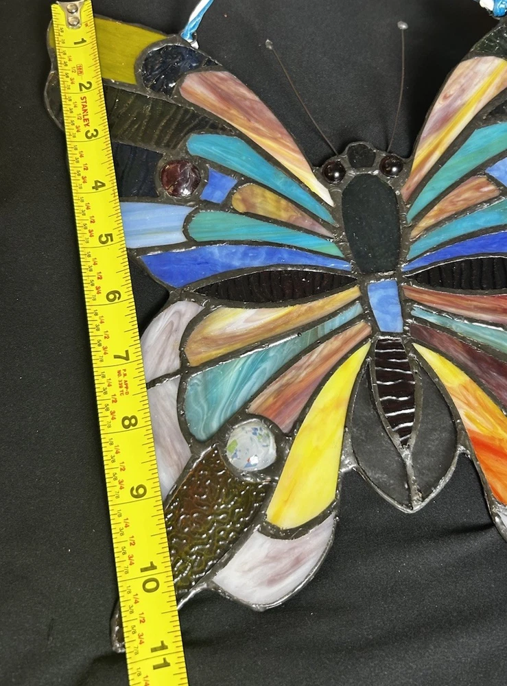 Butterfly Tiffany-style Stained Glass Suncatcher Colorful 10 3/4” Home Decor Good used condition. Normal signs of wear and use, minor scratches. Please study pictures carefully before purchasing Feel free to ask us any questions. Thank you for visiting our store! Bnfrgl