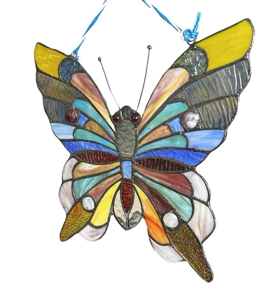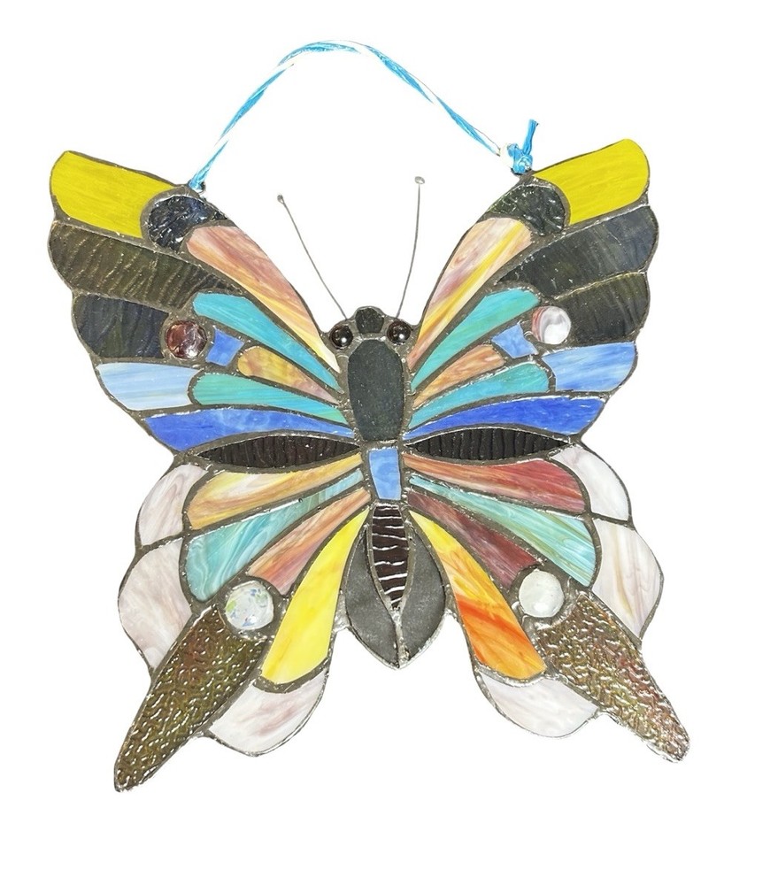 Butterfly Tiffany-style Stained Glass Suncatcher Colorful 10 3/4” Home Decor