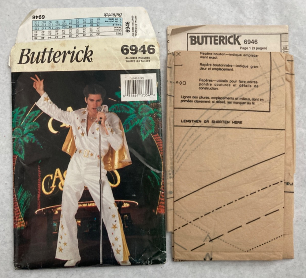 Butterick 6946 Elvis Jumpsuit Costume Sewing Pattern is a man's size XS-L, Chest: 30"-44”. Preowned but not used. Butterick 6946 Elvis Jumpsuit Costume Sewing Pattern is an uncut factory folded pattern in original envelope. The envelope has corner & edge wear, creases, stains and age discoloration on it. Please see photos. We sell preowned sewing patterns. They are listed as used even if they are unopened due to being second hand goods. Condition of each item will be noted. Please check the condition description and photos for details on each item. Please look at our other listings for More Sewing Patterns . We will be adding more items in the future. Please contact us with any questions you have. If you would like us to combine shipping, please request an invoice before paying. Due to the larger sizes of some of our items and/or lots, it may not be possible to combine shipping.