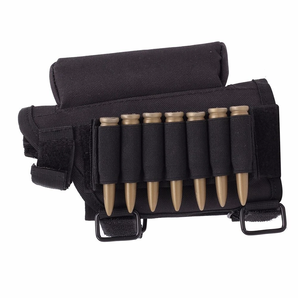 Store Categories Store Categories Bags and Pouch storage bag Tactical Bags Glasses Pouch Wallets Key Bag Molle Pouches Hats Hunting Outdoor Multi Tools Hunting Holster Hunting Pouches Laser and Riflescopes Scope Mounts Hunting Accessories Magazine Pouch Gun Slings & Belts Dog Supplies US STOCK Other Buttstock Cheek Rest Riser Pad Ammo Pouch Carrier for .300.308 Win Hunting Rifle Product Description Ambidextrous cheek rest to fit most fixed rifle stocks Hook and loop strap s make for a snug fit for left or right handed shooters Removable p adde d ins er t is included to help with more natural point of aim Made of nylon to prevent your cheek from slipping even when temperatures soar Triple strap adjustment and ambidextrous design Removable center pad to lower eye relief Removable covered 7 round ammo carrier for .308 or .300 winmag Specification Material: Nylon Size: 9*8*4.5 inches Weight: 7.2 ounces Color: Black Note: Only one buttstock cheek rest, other accessories are not included. Package content 1*Buttstock Cheek Rest Shipping Policy Returns Policy About US Shipping Policy Item will be shipped within 1 working days after received payment. USPS : USA 7-15 working days to arrive Air mail : 15-25 working days to arrive (other countries) Express Delivery: 7-10 working days to arrive NOTE: If you need your items urgently, we can ship it out by Express Shipping,but you need to charge extra fees. Returns Policy 1. We fully guarantee our items. All items are in brand new condition unless specified otherwise elsewhere in the description. 2. All returns - defective or otherwise - have to be preauthorized. Please contact us to get an authorization and returning address before sending the item back. All returned items must include original packaging and all accessories. 3. We will pay for the shipping cost of re-sending items to you, while buyers are responsible for the postal cost of returning the items. About US Our office hours are: 9:00 a.m. to 6:00 p.m. (GMT+8), Monday to Friday,And our office is closed on weekends and public holidays. Message replying will sometimes be delayed. If you have any question or needs, please let me know.We will reply to you within 24 hours.