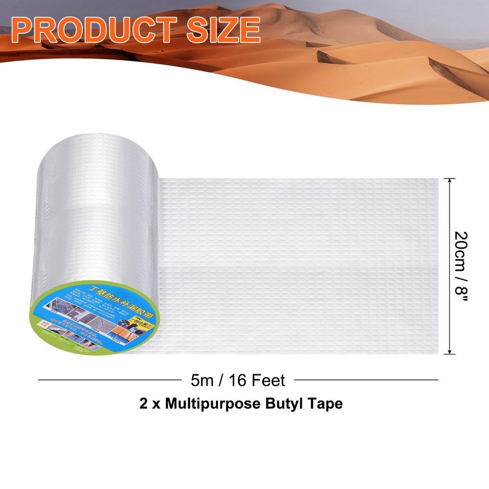 Document What is this?Made from pure butyl rubber, butyl tape is thicker and heavier, waterproof, heat resistant, won't crack or deform, and provides a better seal and long-lasting use.What will I get?Total Size: 20 cmx5 m(8 Inchx16 Feet)Color: SilverMaterial: ButylIn the package of: 2 x Multipurpose Butyl TapeAre there any advantages of the product?Multi-functional repair tape for many occasions such as roof leaks, window sealing, RV awnings, etc. It is widely used on boats, outdoor equipment, etc., and has many applications.How to use it?Waterproof tape is easy to operate. First, clean the target surface and cut it to the right size, then peel off the release film, stick the butyl sealant tape to wherever you need it, and press it. There is no need to do additional waterproof coating.What should I notice?Suitable for a wide range of materials and various weather conditions, aluminum foil tape is a tool for home, car, outdoor, and other occasions. Butyl Tape 8 Inch x 16 Feet Aluminum Foil Tape (Silver, Pack of 2) What is this? Made from pure butyl rubber, butyl tape is thicker and heavier, waterproof, heat resistant, won't crack or deform, and provides a better seal and long-lasting use. What will I get? Total Size: 20 cmx5 m(8 Inchx16 Feet) Color: Silver Material: Butyl In the package of: 2 x Multipurpose Butyl Tape Are there any advantages of the product? Multi-functional repair tape for many occasions such as roof leaks, window sealing, RV awnings, etc. It is widely used on boats, outdoor equipment, etc., and has many applications. How to use it? Waterproof tape is easy to operate. First, clean the target surface and cut it to the right size, then peel off the release film, stick the butyl sealant tape to wherever you need it, and press it. There is no need to do additional waterproof coating. What should I notice? Suitable for a wide range of materials and various weather conditions, aluminum foil tape is a tool for home, car, outdoor, and other occasions. Hot Item Payment 1.We accept eBay payment . 2.Payment must be received within 7 business days of auction closing. Shipping 1.We ship to your eBay or Paypal address. Please make sure your eBay and Paypal address is correct before you pay. 2.Items will be shipped within 1-3 business day when we received payment. 3.Delivery time depends on destination and other factors. Description Policy Butyl Tape 8 Inch x 16 Feet Aluminum Foil Tape (Silver, Pack of 2) What is this? Made from pure butyl rubber, butyl tape is thicker and heavier, waterproof, heat resistant, won't crack or deform, and provides a better seal and long-lasting use. What will I get? Total Size: 20 cmx5 m(8 Inchx16 Feet) Color: Silver Material: Butyl In the package of: 2 x Multipurpose Butyl Tape Are there any advantages of the product? Multi-functional repair tape for many occasions such as roof leaks, window sealing, RV awnings, etc. It is widely used on boats, outdoor equipment, etc., and has many applications. How to use it? Waterproof tape is easy to operate. First, clean the target surface and cut it to the right size, then peel off the release film, stick the butyl sealant tape to wherever you need it, and press it. There is no need to do additional waterproof coating. What should I notice? Suitable for a wide range of materials and various weather conditions, aluminum foil tape is a tool for home, car, outdoor, and other occasions. Hot Item Payment 1.We accept eBay payment . 2.Payment must be received within 7 business days of auction closing. Shipping 1.We ship to your eBay or Paypal address. Please make sure your eBay and Paypal address is correct before you pay. 2.Items will be shipped within 1-3 business day when we received payment. 3.Delivery time depends on destination and other factors.