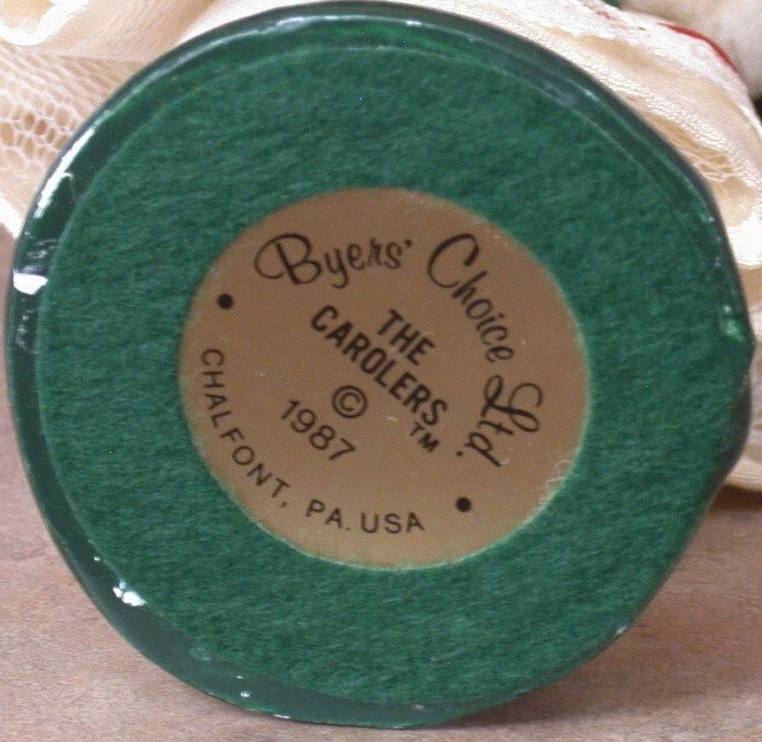 Type: Figurine Country/Region of Manufacture: United States Time Period Manufactured: 1980-1989 Handmade: Yes Material: Mixed Materials Occasion: Christmas Brand: Byers Carolers Year Manufactured: 1987 Personalize: No Color: Multicolor