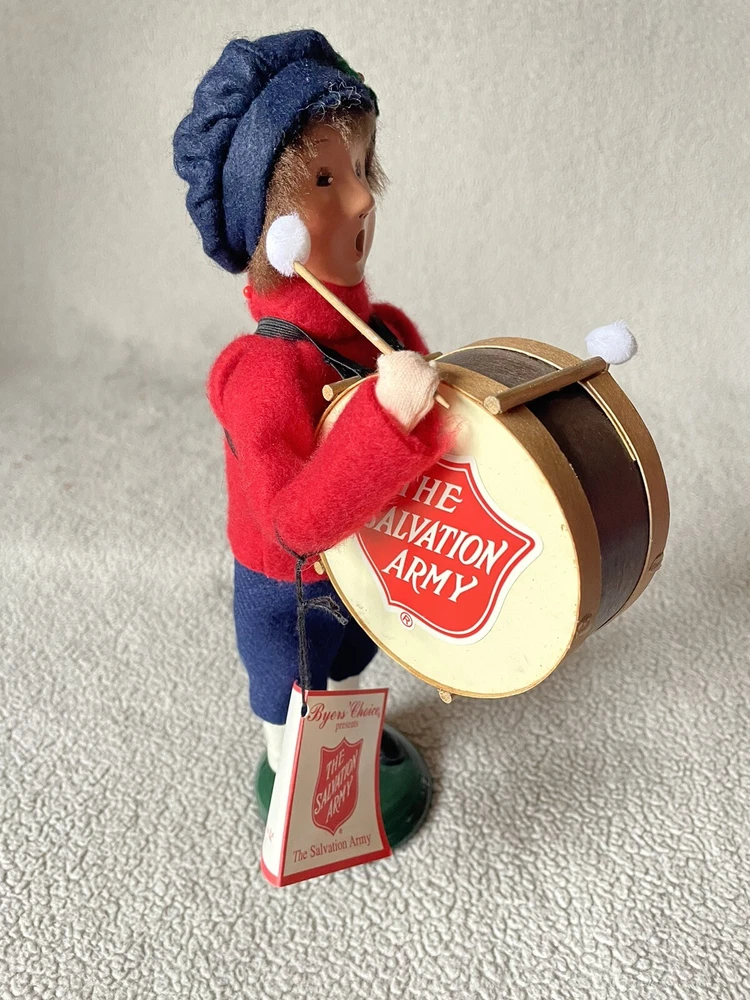 Embrace the spirit of the season with the Byers' Choice Carolers The Salvation Army Boy With Drum figurine. This charming piece captures the essence of Christmas generosity and joy, featuring a colorful design that instantly brightens any space. Skilled artisans crafted this item from quality fabric materials, ensuring each piece is as durable as it is delightful.Proudly made in the United States, this figurine is a perfect addition to any holiday collection or as a standalone display that celebrates the festive occasion. With its multicolor palette and timeless theme, it brings a touch of nostalgia and warmth to your Christmas decor, making it a cherished keepsake for years to come.
