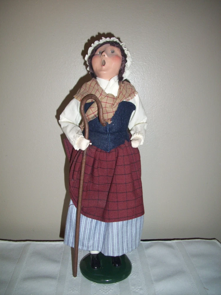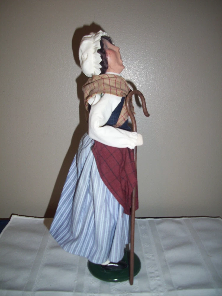 Evoke the spirit of colonial Christmas with the Byers' Choice Carolers Williamsburg Woman Shepherdess. This handcrafted figurine, part of the renowned Williamsburg Collection, showcases exquisite attention to detail, with an all-over multicolor design that captures the festive essence of the season. Standing at a stately 13 1/2", the piece is a large and vibrant addition to any holiday display. Crafted from a mix of materials with a multi-finish, this authentic 2005 creation reflects a timeless colonial style, perfect for those who cherish the traditions and artistry of Christmas past. Proudly made in the United States, it's a singular piece that brings a touch of the historic Williamsburg spirit to your home. SEE MY OTHER BYERS CHOICE FIRGURES I HAVE LISTED.