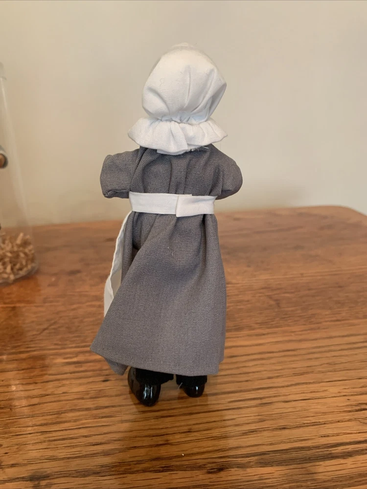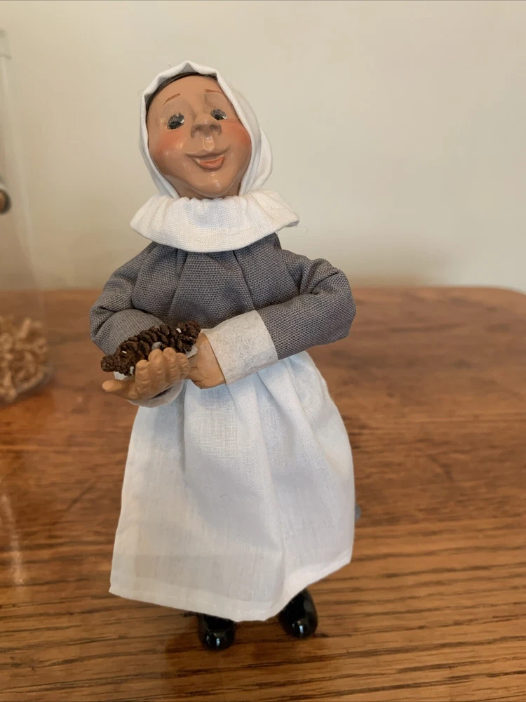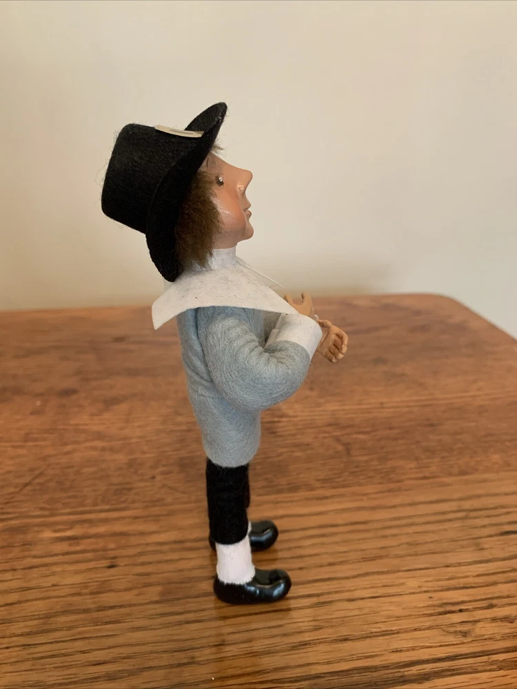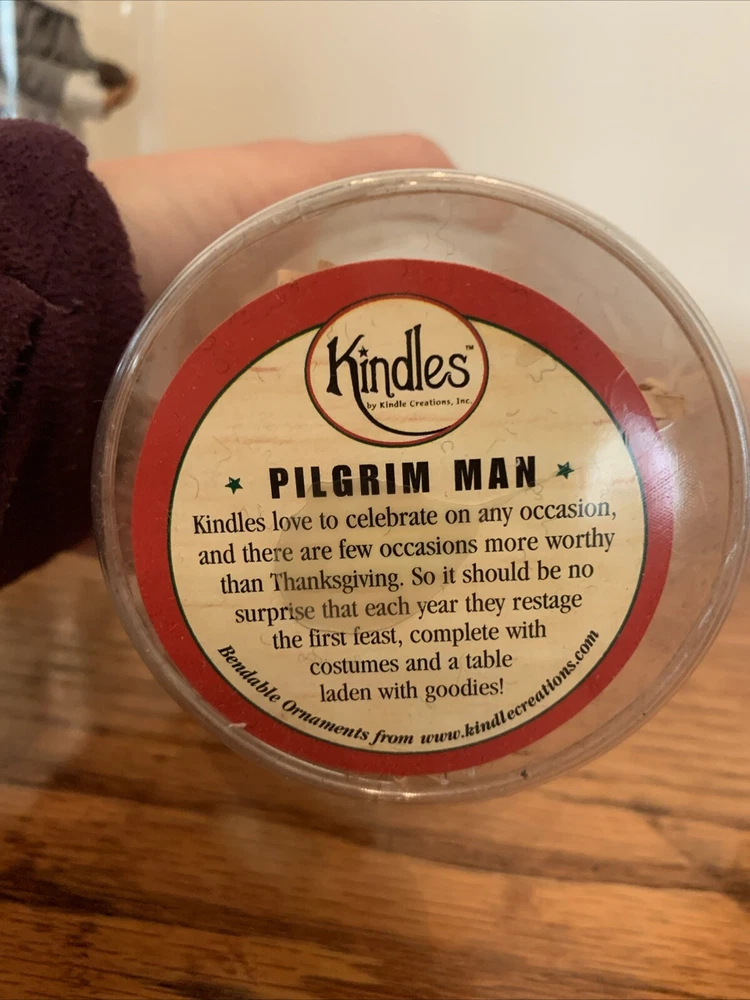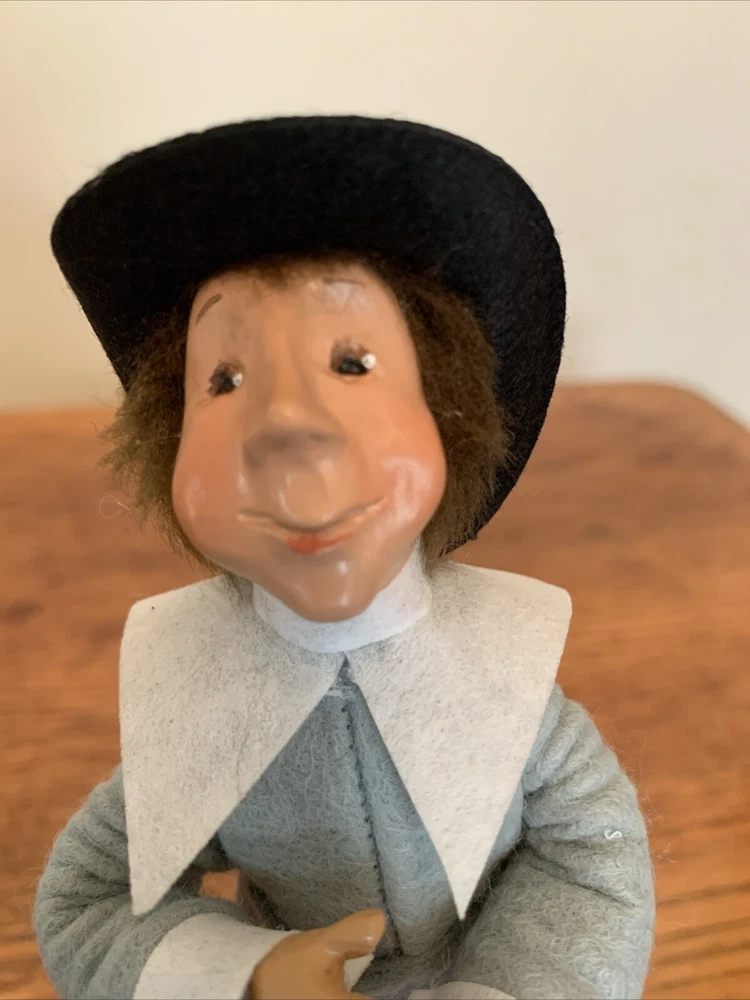 Byers’ Choice Kindles Pilgrim Man and Woman in good used condition. They are almost 7” tall. Bendable. Perfect decoration for the holidays.