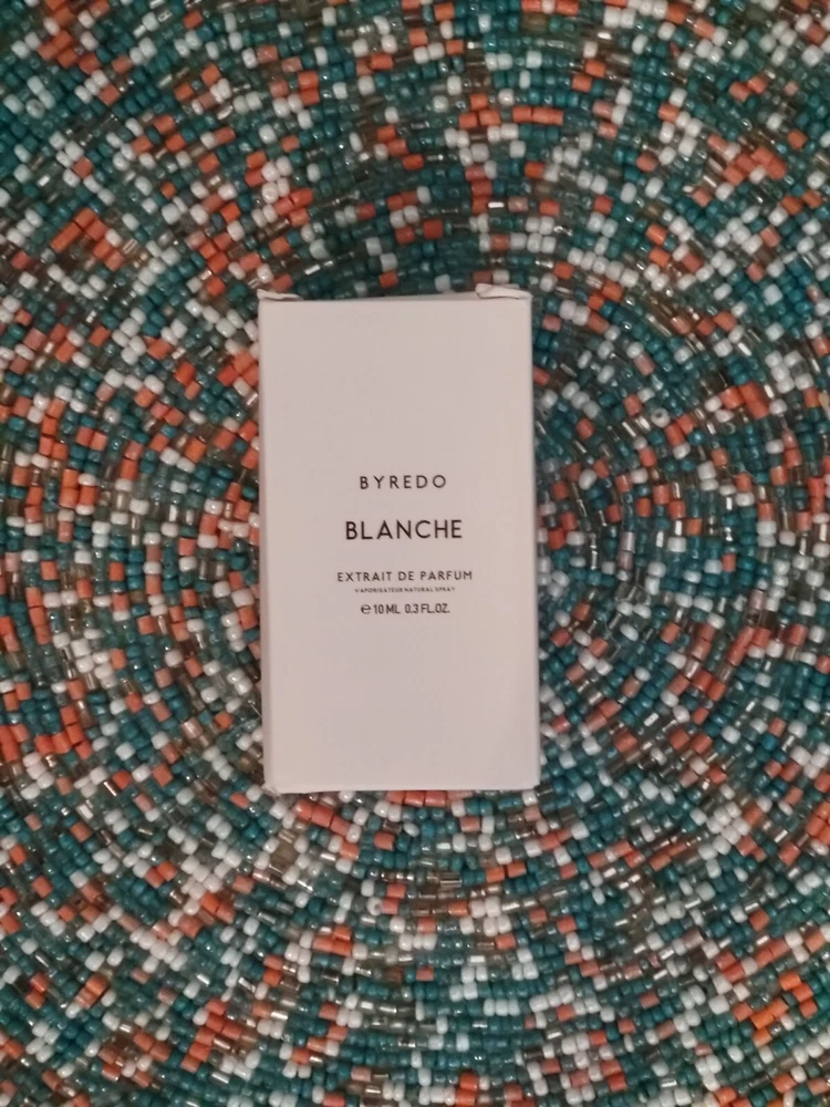 Byredo Blanche parfum 10 ml 0.30 oz Women's Perfume MINI Splash DABBER Fragrance MINI Splash 0.25oz 7.5ml Travel Size Women's Perfume NEW IN BOX, great for car purse luggage travel! MINIATURE DABBER What does Byredo Blanche smell like? This floral aldehyde fragrance has a blend of rose, pink pepper, aklehydes, peony, sandalwood, and musk.