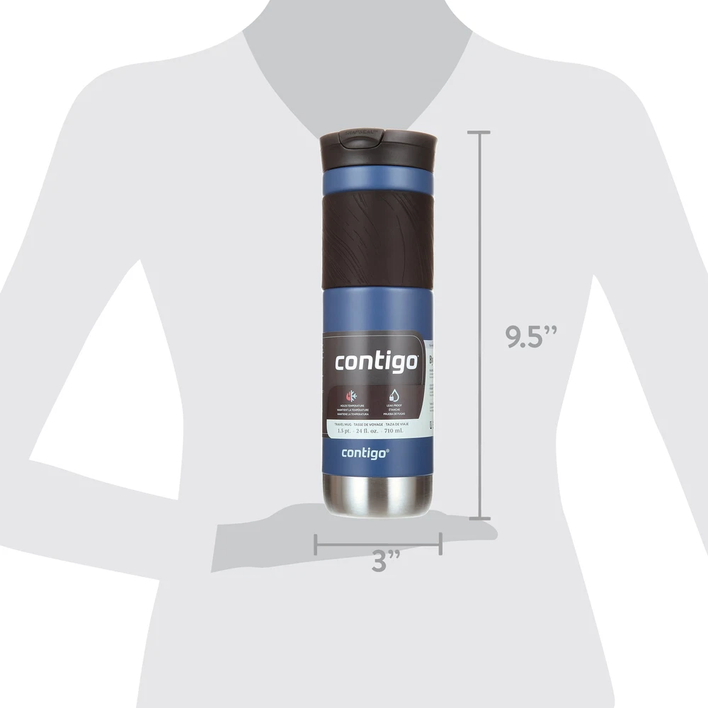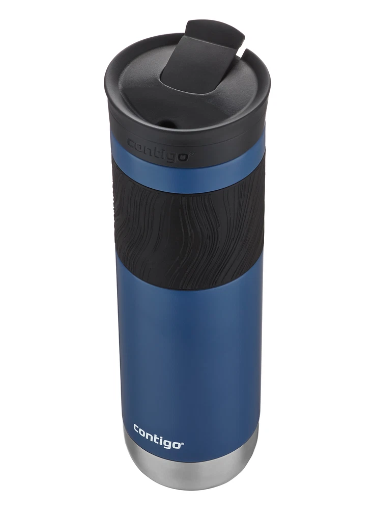 The Contigo Byron 2.0 Stainless Steel Travel Mug with SNAPSEAL Lid and grip Blue Corn, 24 fl oz. keeps drinks hot up to 9 hours or cold up to 21 thanks to THERMALOCK™ double-wall vacuum insulation. The one-piece SNAPSEAL™ lid allows for one-handed drinking with no lids or caps to remove or misplace and is leak-proof when closed. Plus, a subtly textured grip offers a secure hold. Contigo Byron 2.0 Stainless Steel Travel Mug with SNAPSEAL Lid and grip Blue Corn, 24 fl oz. SEAL IT IN: Leak-proof lid (when closed) for on-the-go convenience FOR THE LONG HAUL: THERMALOCK™ double-wall stainless steel insulation keeps drinks hot up to 9 hours or cold up to 21 LEND A HAND: One-handed drinking with no lids or caps to remove or misplace GET A GRIP: Subtly textured grip with updated fluid movement for a secure hold on the go PERFECT FIT: Fits most car cup holders EASY CLEANUP: Top rack dishwasher-safe lid, hand wash body CAPACITY: 24 ounces