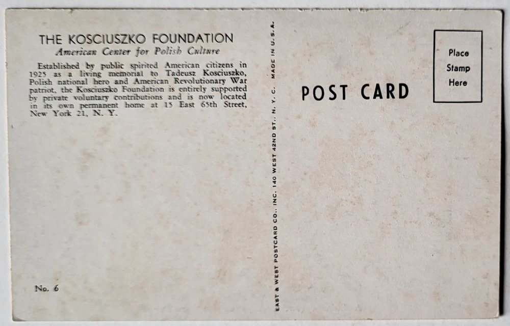 Size: Standard (5.5 x 3.5 in) Material: Paper Era: Divided Back 1950s Signed: No Type: Printed (Lithograph) Subject: KOSCIUSZKO FOUNDATION MEMBERS MEETING NEW YORK NY POSTCARD City: New York City Year Manufactured: 1950 Theme: Cities & Towns, Countries, Cultures & Ethnicities, Events, Historical Figures, People, Social History Region: New York Postage Condition: Unposted Features: Divided Back Brand/Publisher: East and West Postcard Co Unit of Sale: Single Unit Continent: North America Country: United States Featured Person: Tadeusz Kosciuszko Original/Licensed Reprint: Original Country/Region of Manufacture: United States Number of Items in Set: 1