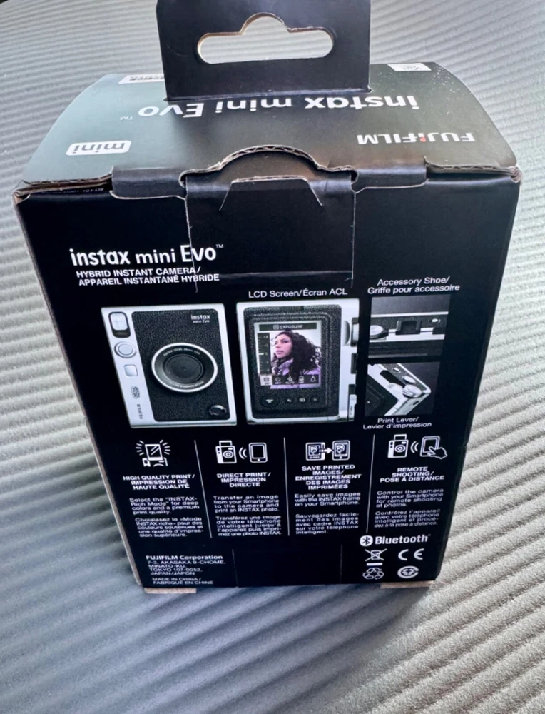 The Fujifilm instax mini Evo Hybrid Instant Camera in black combines the convenience of instant photography with modern features. Digital and prints photos instantly in high quality, remote shooting, and option to save printed images. It offers both auto and manual focus options, along with auto exposure and a built-in flash for capturing well-lit shots. With various shooting modes and a timer function, users can easily customize their photography experience. This compact camera uses Instax Mini film to produce instant prints, making it a versatile choice for capturing memories on the go. Made in Japan, this unit is a sophisticated and user-friendly option for film photography enthusiasts.