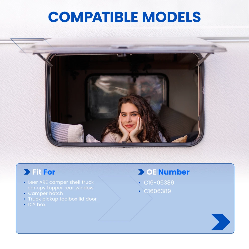 Auto Part Position: Left,Right,Rear Extended Length: 13.9 Inches Compressed Length: 8.9 Inches Item Weight: ‎11.29 ounces Package Dimensions: ‎16.93 x 1.97 x 1.18 inches Country of Origin: ‎China Manufacturer Part Number: ‎C16-06389 FIT FOR: Leer ARE camper shell Truck canopy topper rear window Camper hatch Truck pickup toolbox lid door DIY box Auto Part Position: Left,Right,Rear Extended Length: 13.9 Inches Compressed Length: 8.9 Inches Item Weight: ‎11.29 ounces Package Dimensions: ‎16.93 x 1.97 x 1.18 inches Country of Origin: ‎China Manufacturer Part Number: ‎C16-06389 FIT FOR: Leer ARE camper shell Truck canopy topper rear window Camper hatch Truck pickup toolbox lid door DIY box C16-06389 Gas Struts Specifications 13.9 inch 24lb/107N Gas Struts Shocks Spring Lift Support. Extended Length 13.9 inch. Compressed Length 8.9 inch. 13.9 Inch Shock Interchange Number Find the below Interchange number on your OEM gas shock cylinders for a exact match: C16-06389 C1606389 . C1606867 Struts Package ContentPackage contains 13.9 inch gas struts*2. Installation with a flat screwdriver, no special tools required.