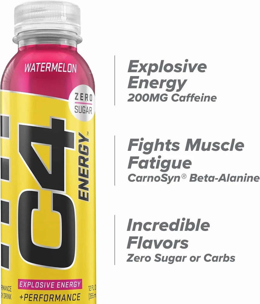 C4 Zero Sugar Watermelon Energy Drink - 200mg Caffeine & Beta-Alanine, 24-Pack