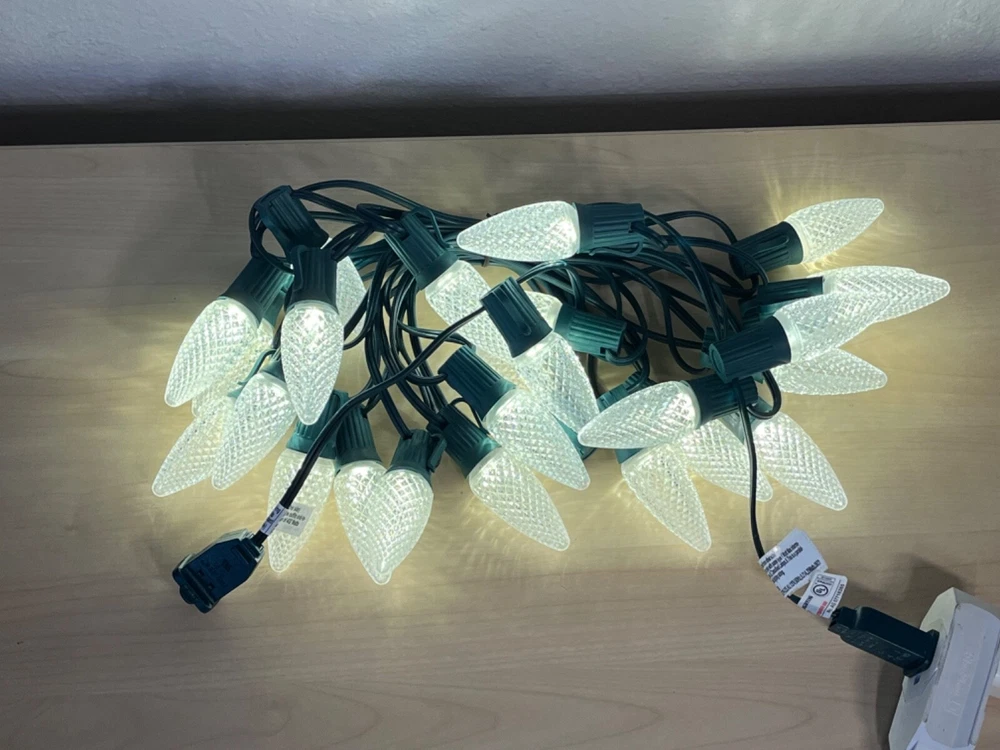 C9 Christmas Lights - Faceted Warm White LED String Light Set - 25 Count - 25ft