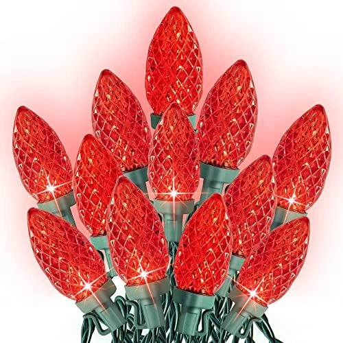 C9 Christmas String Lights, Waterproof Connectable Green Wire 100 LED Red