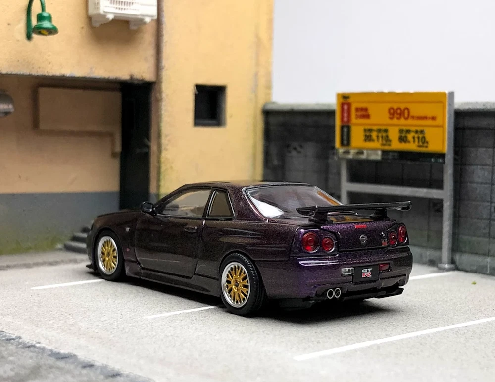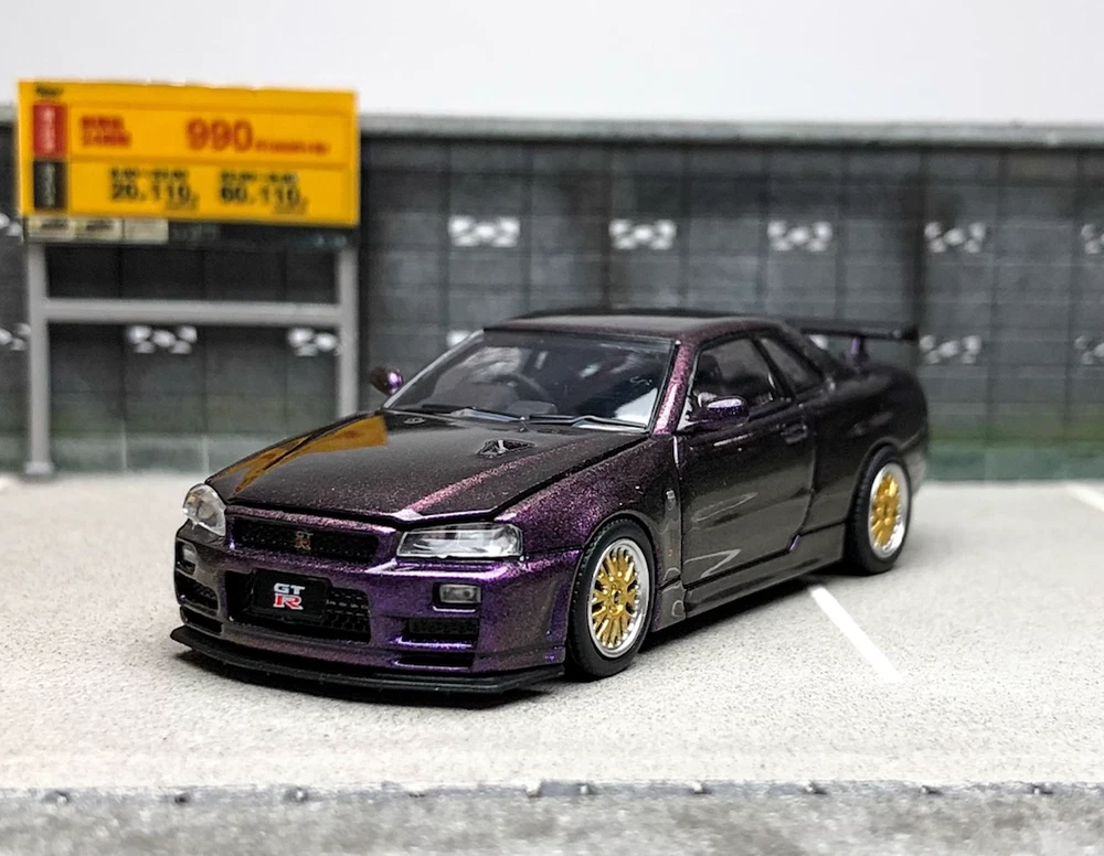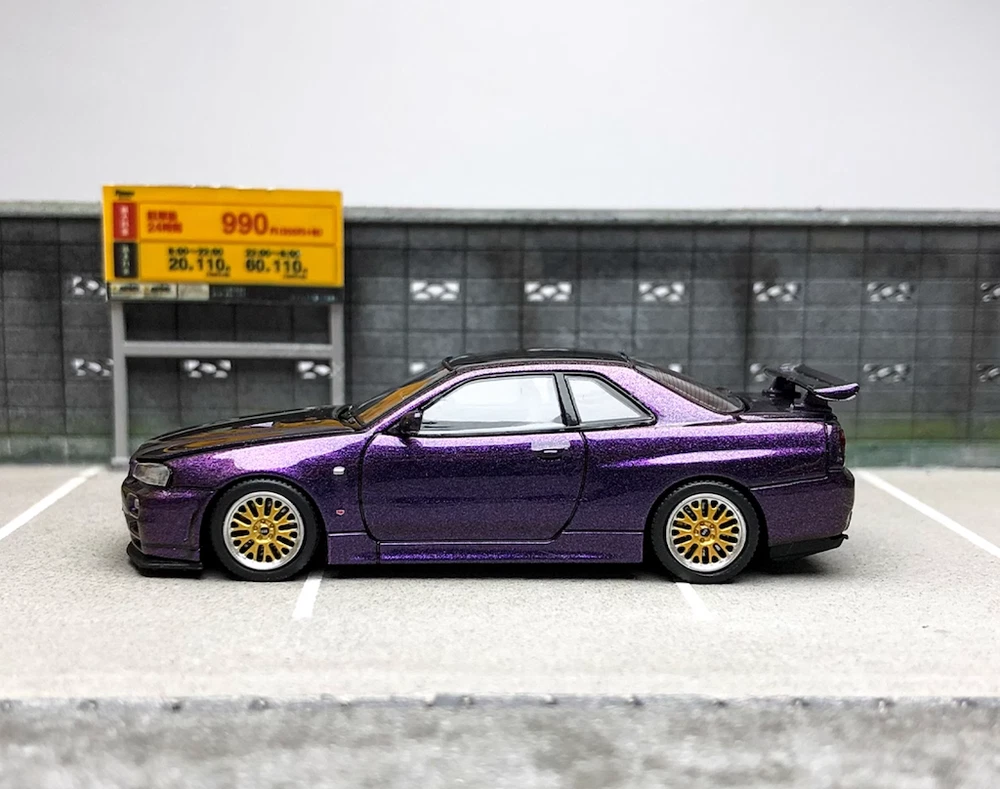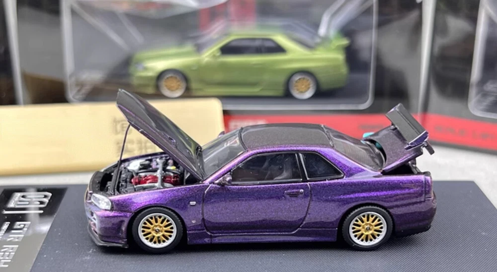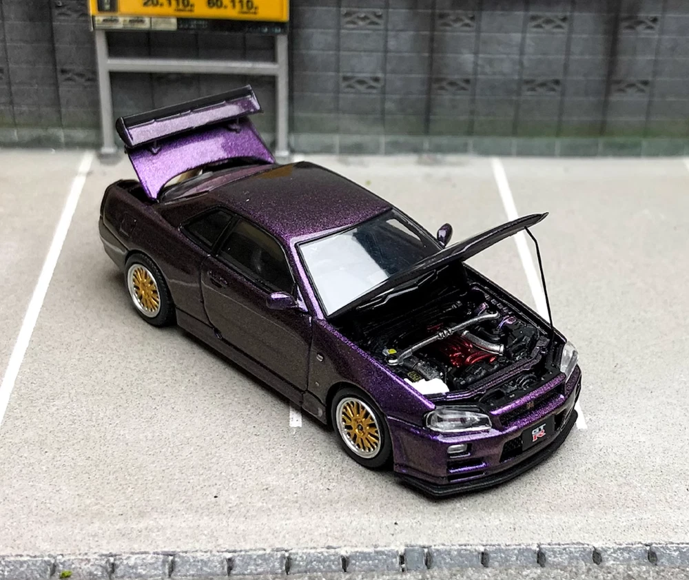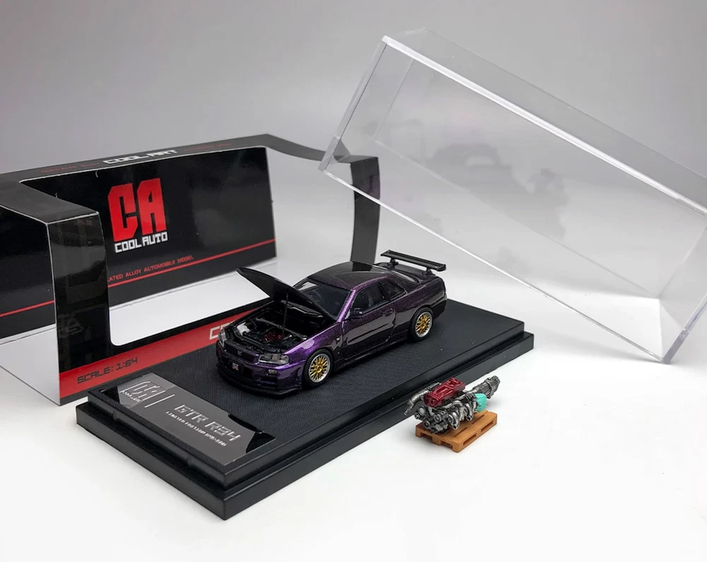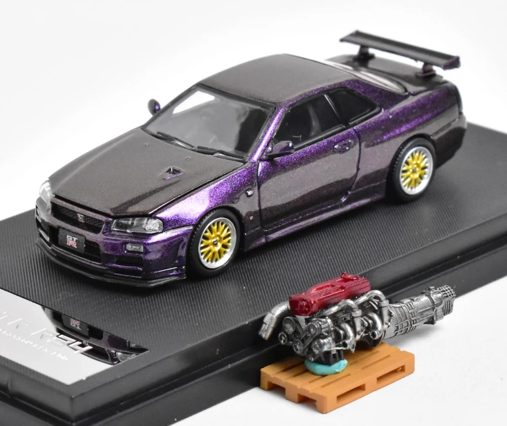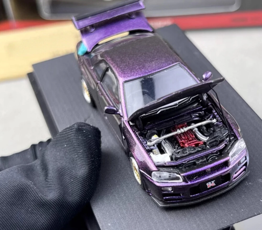 CA 1:64 JDM Purple Skyline GTR R34 Engine Sports Model Diecast Metal Car