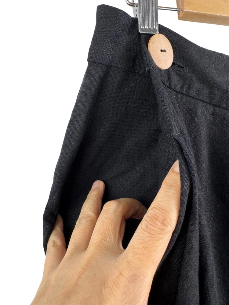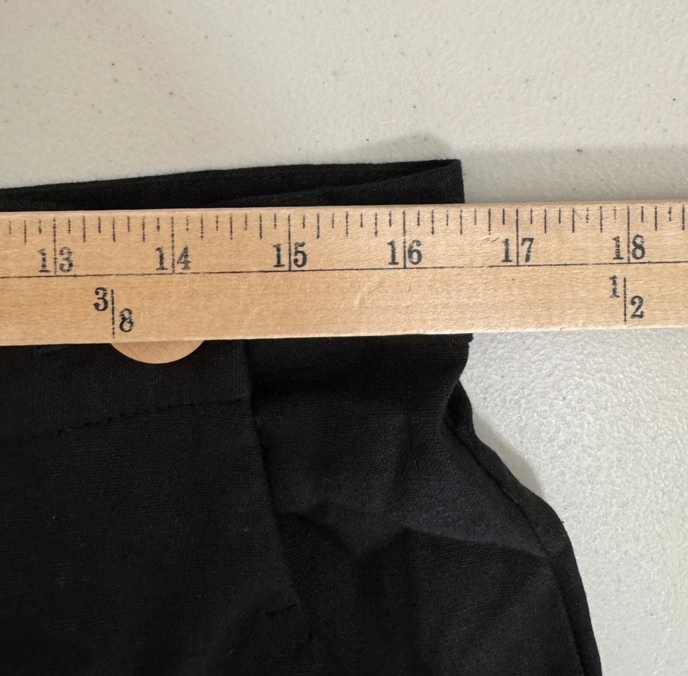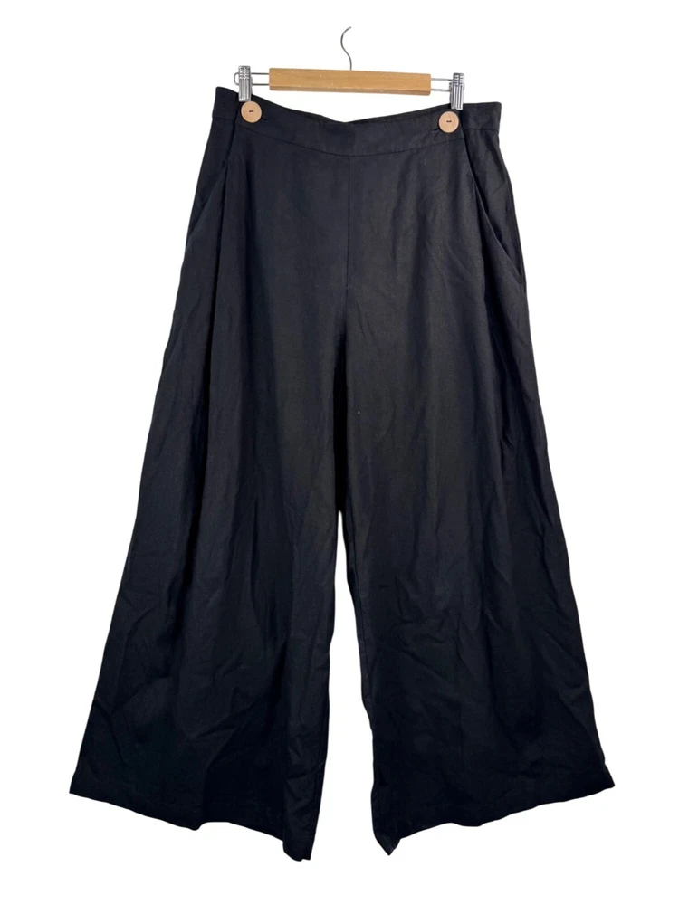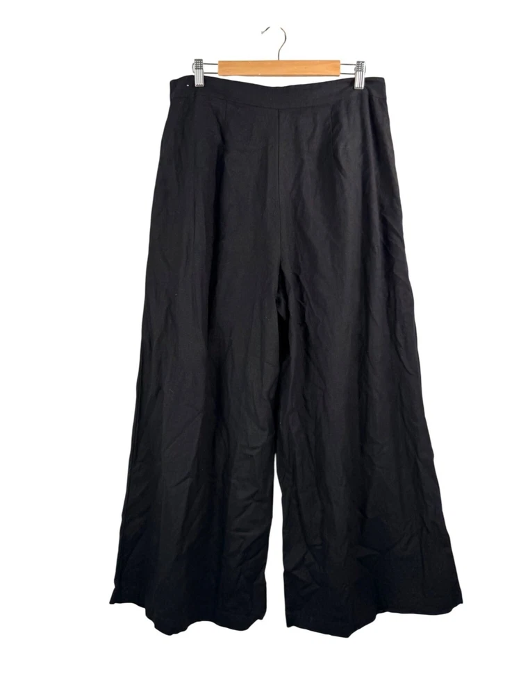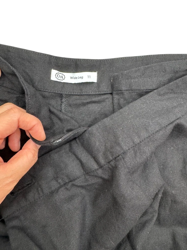 Good preowned condition "Timeless lagen-look style! C&A Canada Wide-Leg Linen Pants in classic black. Features a relaxed fit with button details and pleated accents for effortless sophistication. Perfect for casual or elevated outfits. Flat lay: waist 16" Rise 14" Inseam 27" Leg Opening 16" Cropped super wide pleated leg style, cool button detail on the front that goes over the front zipper 72% viscose 28% linen linen, wide leg, pleated, minimalist, casual, work wear, office, money, classic, flowy, boho, coastal, beachy, retro, lagen look, 90s, relaxed, high waist, chic, city PLEASE check all flat lay measurements and listings carefully BEFORE PURCHASE!I put in a lot of work into hand measuring and researching each items as best as I can! Thank you so much for your consideration! Please note that: RETURN SHIP FEE IS PAID BY THE BUYER! If you are not too familiar with flat lay measurements, I recommend taking a measurement of your own clothes that you feel comfortable and compare with the measurement I provide. For returns: The items MUST BE IN SAME CONDITION AS SOLD for full refund! We all don't like returns and let's work together to minimize! Please note that RETURNS ARE NOT ACCEPTED FOR NEW WITH TAG OR NEW WITHOUT TAG ITEMS!