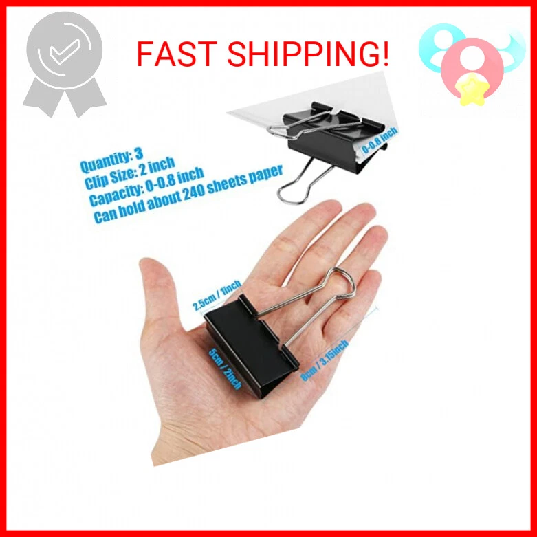 CABAX Extra Large Binder Clips 2-Inch, Big Paper Clamps for Office School Home Kitchen Storage Supplies Black, Pack of 3 - Size: 2 inch(51mm) black binder clips with 0.8-inch capacity. - Premium Material and Durable: Made of tempered steel with silver arms for an extra-strong grip.The binder clips can be easily removed with a pinch of the arms without leaving the mark of a staple - A Must-have Tool: It helps to keep large stacks of loose papers securely fastened together without the risk of slipping or pulling out - Wide Application: These paper clamps can be widely used in office, home, school and crafts, as they are ideal for providing instant binding for documents, closing open frozen veggies - Package contents: 3 Pcs Extra Large Binder Clips 2-Inch, Big Paper Clamps Black Payments We accept the following payment methods PayPal Support Our dedicated customer support team is here to assist you from 9AM to 5PM Monday through Friday, excluding public holidays. Should you reach out to us and not recieve an immediate response, it's likely due to a higher-than-usual volume of inquires. We want to reassure you that your concerns are important to us, and we're working dilligently to get back to you. Expect a response by the next business day at the latest. Your understanding and patience are greatly valued as we strive to provide you with the best support possible! Shipping All orders are processed within 5 business days. Shipping estimates may be shown on this listing by eBay, and these are often not an accurate reflection of our shipping times. If we are experiencing a high volume of orders, shipments may be delayed by a few days. Please allow additional days in transit for delivery. If there will be a significant delay in shipment of your order, we will contact you via message. Shipping rates & delivery estimates Shipping is often free, but if charges for your order apply they will be calculated and displayed at checkout.