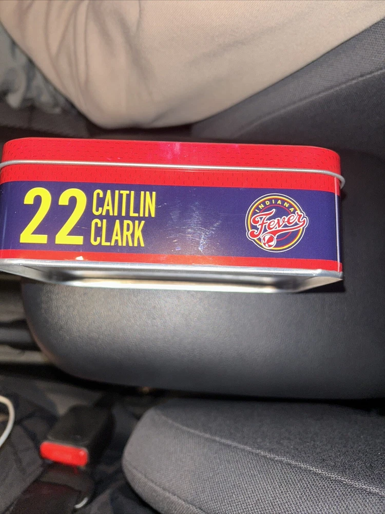 The product is an exclusive collectible tin featuring Caitlin Clark, a player from Indiana Fever and Iowa Hawkeyes, for the 2023-24 WNBA season. It is a set from the WNBA 2024 Select series by Panini, with no cards included. The tin is empty and does not contain any packs or cards.
