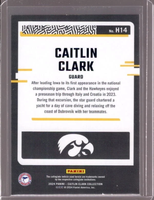 You are bidding on a CAITLIN CLARK 2024 Panini Caitlin Clark Collection Highlights Logo Parallel #H14 . Shipping is $1.25 and I combine shipping $1.25 for each additional item, shipping caps at $5.50. You can also choose Ground advantage during checkout. Thanks.