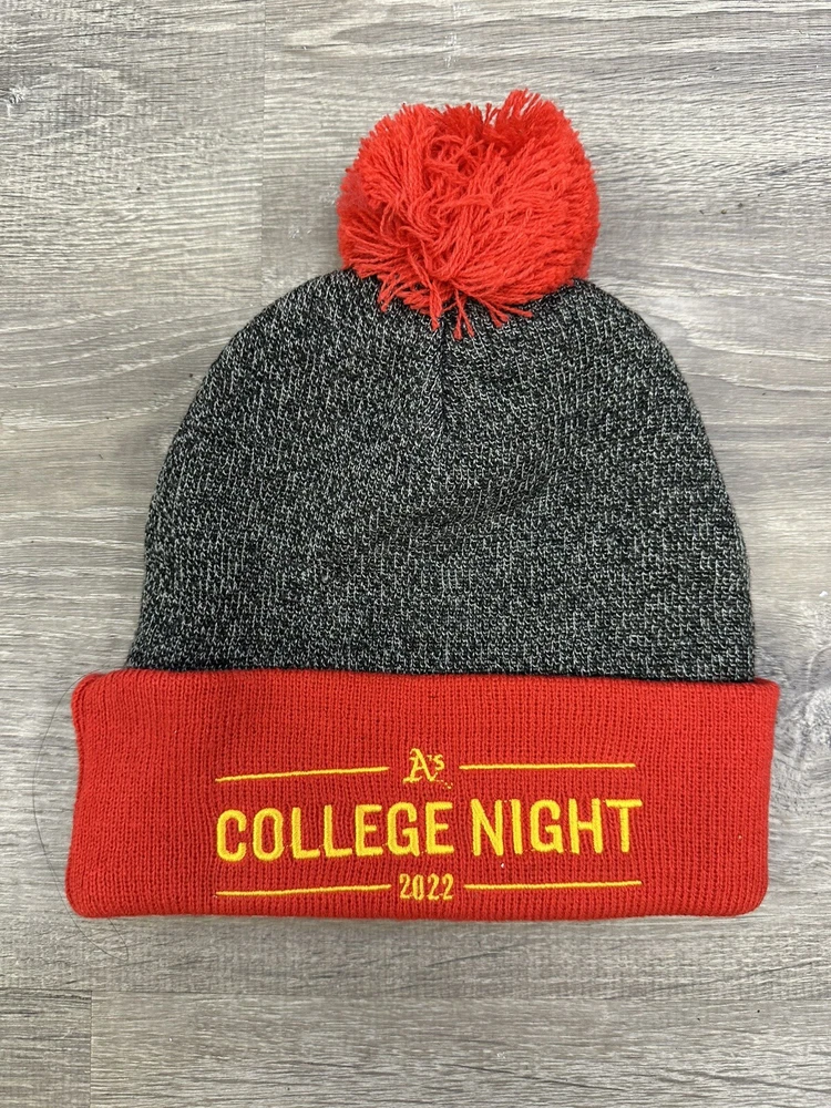 Represent your team spirit with this stylish Cal State Eastbay beanie! It features the iconic blue and gold colors and is perfect for any baseball fan. This one-size hat is a great addition to your collection and makes for a perfect gift for any fan of the team. The beanie is made of high-quality materials and is perfect for wearing to games or as a part of your everyday wardrobe. This Oakland A's College Night SGA beanie is a must-have for any fan of the team. It is a great way to show your support and commemorate the special event. The beanie is brand new and has never been worn, making it a perfect addition to your collection. Get yours now and wear it with pride!