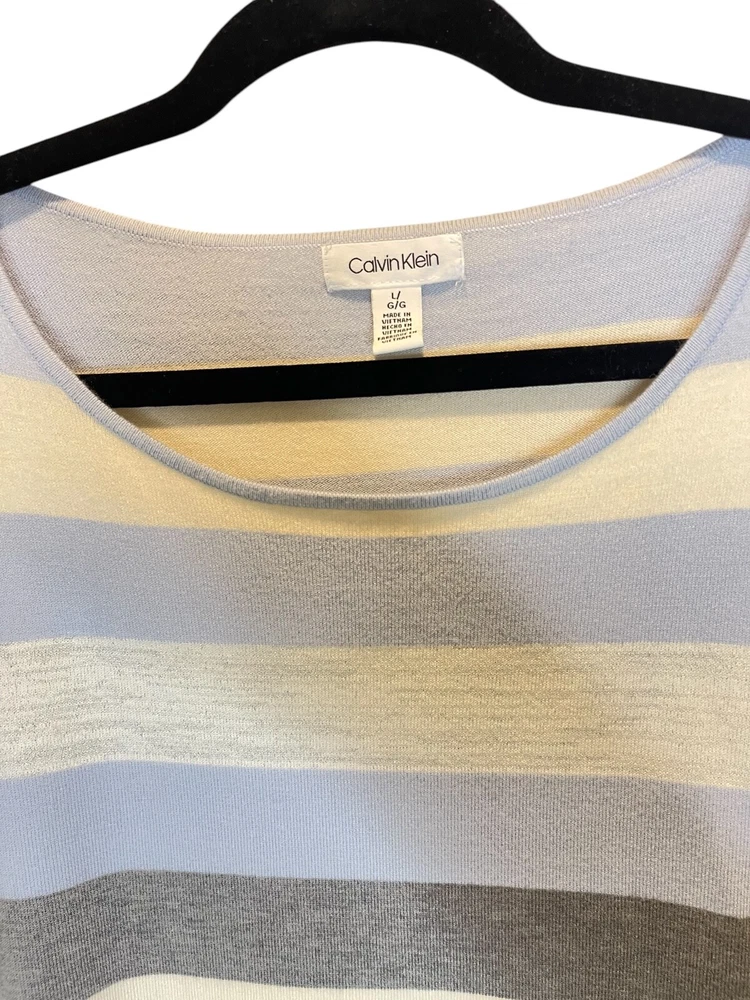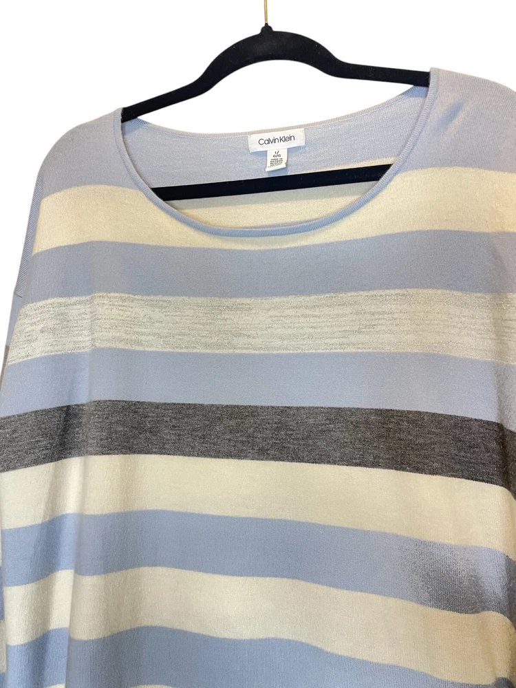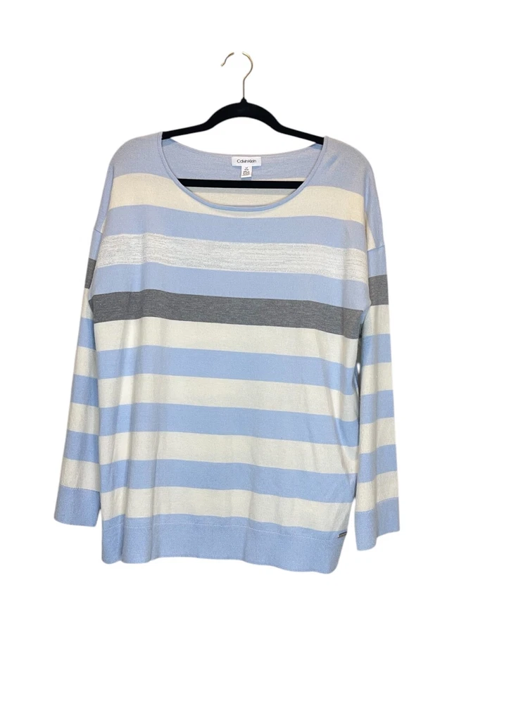 Size Type: Regular Features: All Seasons Type: Sweater Color: Multicolor Material: Nylon, Polyester, Viscose Neckline: Scoop Neck Department: Women Pattern: Striped Brand: Calvin Klein Sleeve Length: Long Sleeve Style: Pullover Size: L Theme: Colorful
