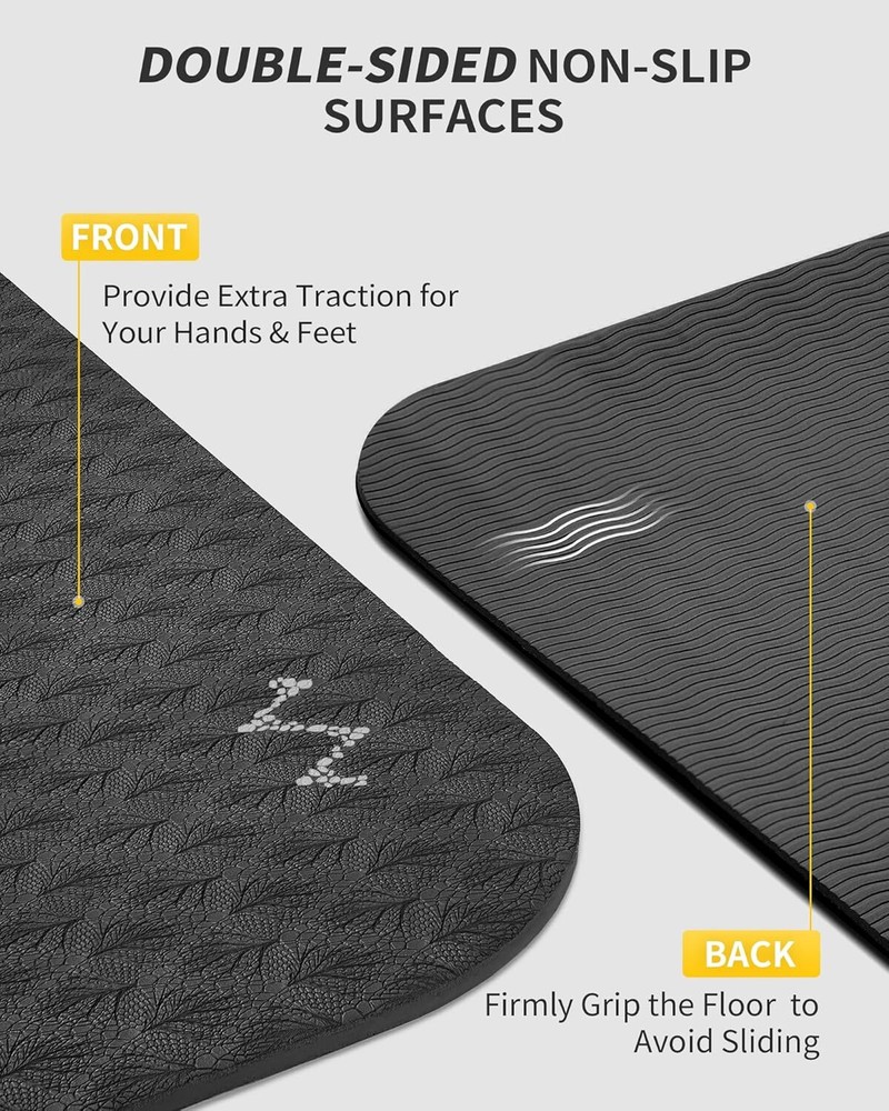 This yoga mat is a game-changer! The extra-wide 6mm thickness provides amazing cushioning for knees and joints, making workouts so comfortable. I love how spacious it is—no more slipping off during poses. Perfect for yoga, Pilates, and home workouts, plus it stays grippy even when I sweat. Super durable and easy to clean. Fast shipping and great seller—highly recommend!