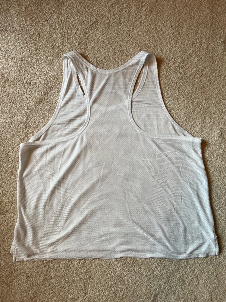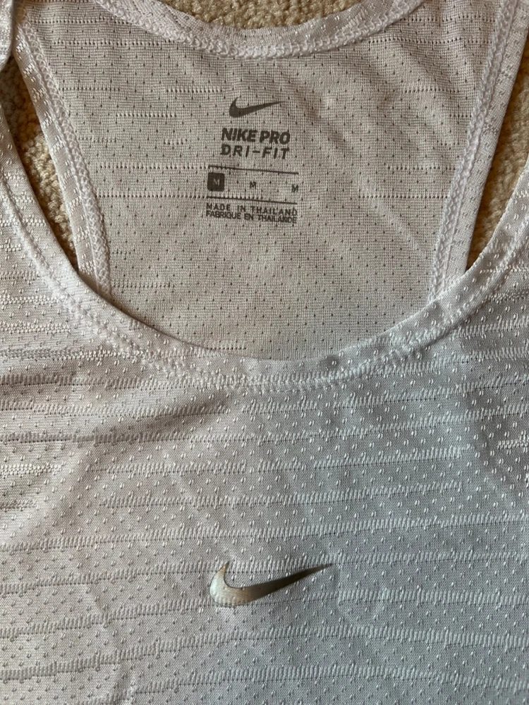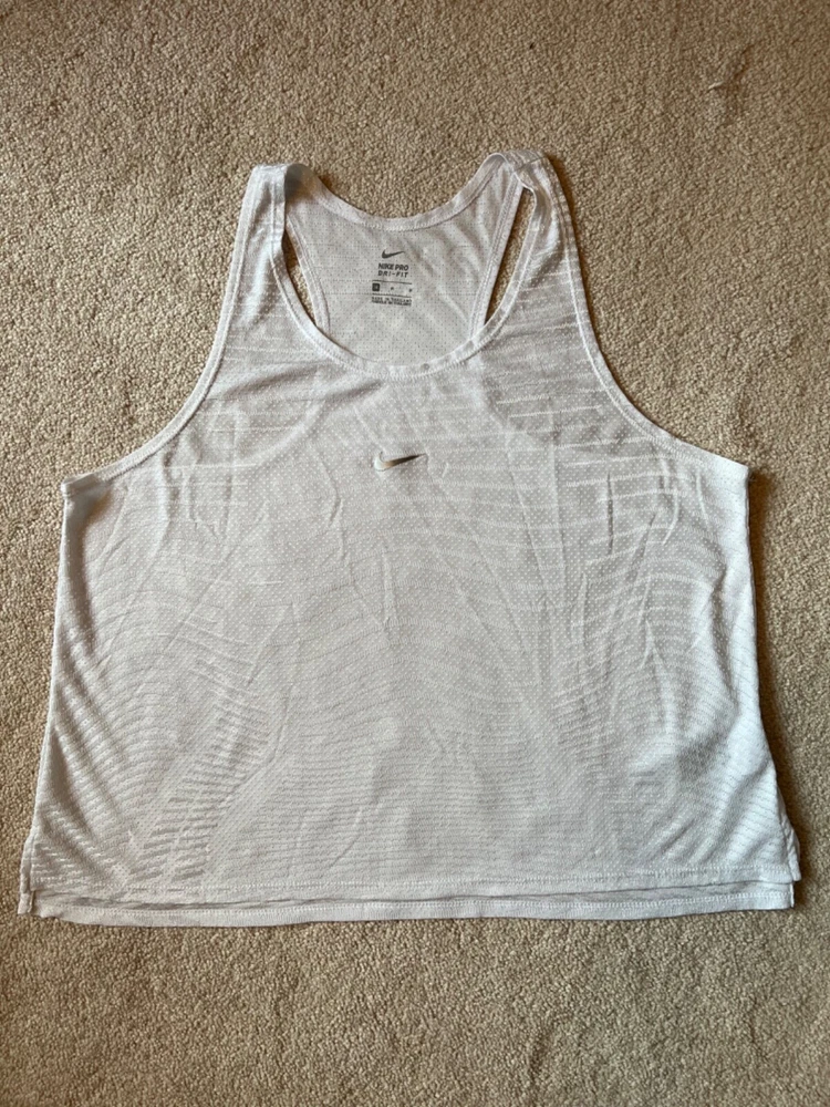 Sleeveless Shirt/Tank/Pinnie DESCRIPTION : BRAND : Nike - Dri-Fit SIZE : Medium COLOR : White DESCRIPTION : Sleeveless - shirt / tank / pinnie MATERIAL : Polyester CONDITION : Excellent used condition. PAYMENT : Payment is due within 3 days of the end of the auction. SHIPPING : Shipping is via US Post Office ONLY. RETURN POLICY : I list items to the best of my ability and try to describe each item as best as possible. Most of the items I sell are purchased at thrift shops/garage sales/etc, therefore I do not know the history to each item. Unless stated new, they are pre-owned items. I cannot guarantee items I sell are from smoke/pet free homes originally. My home is smoke free, however, I do have pets. Because computer monitors and phone screens vary in their ability to display color, color of the actual item may vary slightly. Color is not an acceptable reason for return. Items may be returned for a refund of bid price only (I will not refund any postage). Refunds will be issued once I receive the item back in the same condition as it left. If you have any problems please email me before leaving feedback. Please check out my other items - I will gladly combine shipping! Email me if you have any questions.
