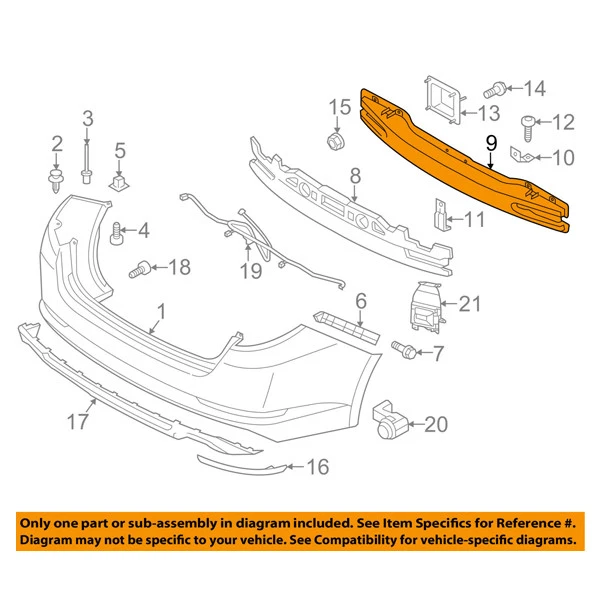 BRAND NEW REAR BUMPER IMPACT FACE BAR REINFORCEMENT CROSSMEMBER! High Quality - CAPA Certified - Replacement Aftermarket - Made Of Durable Components This item is a Non-Original part Compatible with the following years and models: 2014 2015 Kia Optima Trim: EX, EX Luxury, Limited, LX, SX, SX Turbo Note: For USA Built Models Note: excluding Hybrid Model Note: 2.0 & 2.4 Liter 4Cyl Engine - Sedan 4-Door Material: Fiberglass Placement: Rear Center