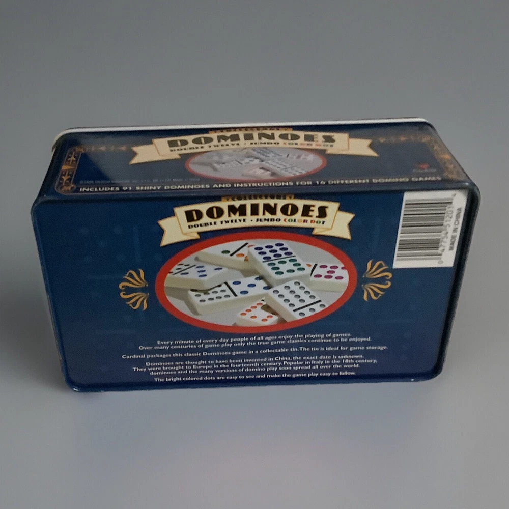 This is a complete set of Cardinal Double Twelve Jumbo Color Dot Dominoes, perfect for any tile game enthusiast. The set includes 91 pieces and comes in a convenient tin box for easy storage and transport. The game is easy to learn and provides hours of entertainment for players of all ages. The brand, Cardinal, is known for their high-quality games and this one is no exception. Whether you're a beginner or a seasoned player, this game is sure to provide endless hours of fun.