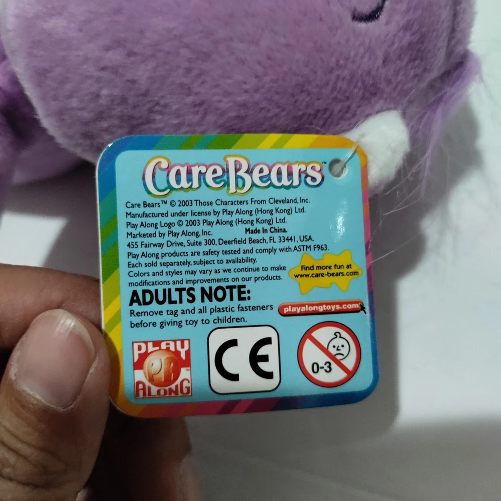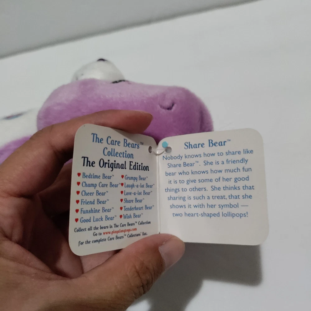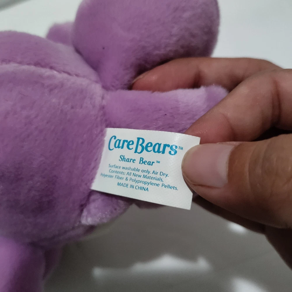 Age:Contemporary 1990-NowColor:PurpleBrand:Care BearsMaterial:PlushYear Manufactured:2002Type:PlushCharacter:Share BearAnimal Species:BearFranchise:Care BearsOccasion:All Occasiongtin13:Does not applyCountry/Region of Manufacture:ChinaAnimal:BearSize:8 inUPC:Does not apply