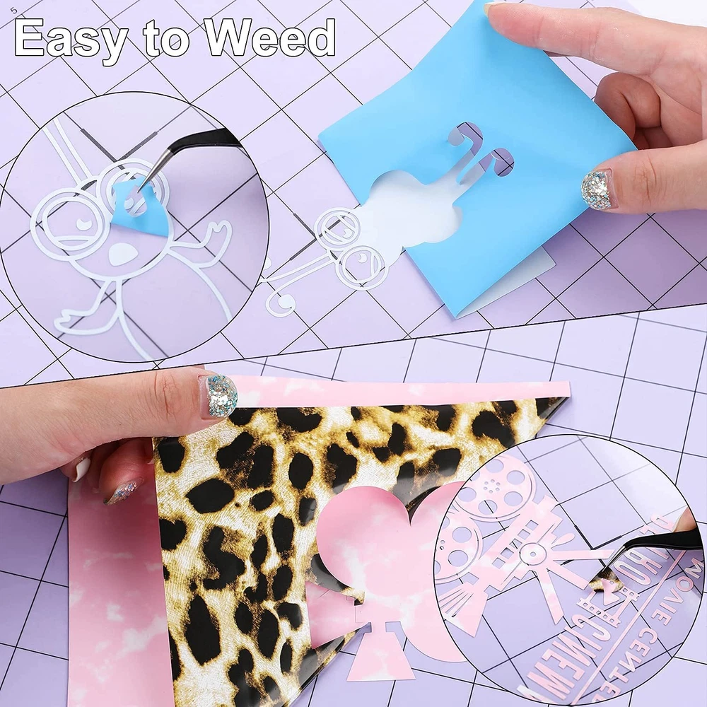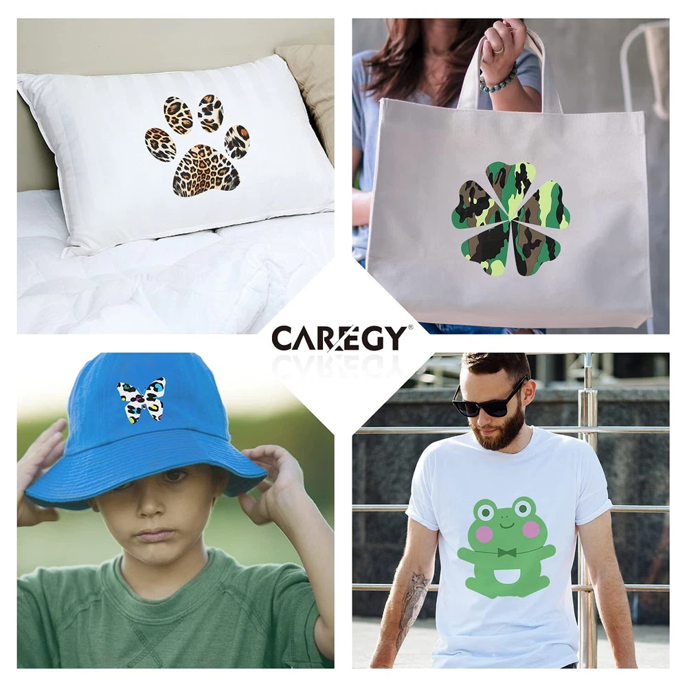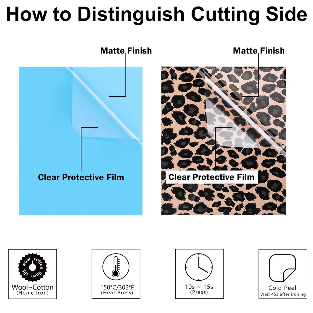 MULTIPLE COLOR BUNDLE:This PU iron on vinyl include 12” X 10” 55 pack colorful htv heat transfer vinyl bundle in 40pack PU iron on vinyl , 6pcs Camouflage htv vinyl, 6pcs Leopard htv, 2pcs Tiger Stripes and Snakeskin Grain htv,also include 1pc teflon sheet EASY To WEED & CUT & TRANSFER :This HTV heat transfer vinyl bundle is thin but with an excellent cutting application feature. The white backing is easy to distinguish the cutting side, and you can follow the instructions and set up suitable parameter with cutters, and then easy to weed and complete the complex projects with NO EXTRA TIME. Quickly and easily apply the adhesive-backed HTV to fabric using a hot iron or heat press. DURABLE & MACHINE WASHABLE - Unlike other HTV vinyl with fading, peeling and crack. Our heat transfer vinyl bundle is pretty sticky, they adhere to the fabric seamlessly and has held up well in the wash.Washing test:40 degrees, more than 50 times,30 min/time.Reverse wash will be better. CUSTOMIZABLE & USE WIDELY: 12" × 10" pre-cut size HTV heat transfer vinyl bundle is suitable for use with most popular cutter machines and cutting mat. Our quality HTV Vinyl Bundle can be used to create stunning projects on a wide variety of fabrics such as including 100% Cotton, Cotton/Polyester Blends and even Athletic Mesh fabrics! Personalize your custom t-shirts, tote bags, caps, aprons, pillows and more with our Vinyl HTV! PERFECT GIFT CHOICE: Great Heat Transfer vinyl,Perfect for holiday costumes! Good choice for Christmas and birthday party gift to your creative kids or friends. Fantastic for a fun project here.you can heat apply it to a variety of fabrics using a heat press or household iron on the correct fabric setting for a look that’s one of a kind every time!