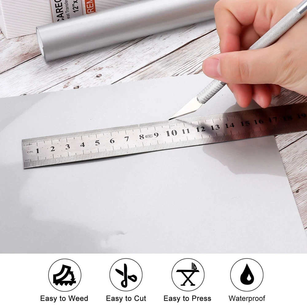 CAREGY HTV Heat Transfer Vinyl Iron on Vinyl 12 inch x15 Feet Roll Easy to Cut & Weed Iron on DIY Heat Press Design for T-Shirts Glossy Sliver 【Easy to Cut & Weed & Transfer】: CAREGY heat transfer vinyl is designed for custom garment decoration. Its optimal thickness makes it easy to cut without causing any damage to the clear film. The htv vinyl roll is pressure and temperature sensitive and is easier to transfer to the desired surface. Our htv vinyl is compatible with all cutters machines 【Great Stickiness & Machine Washable】: Our htv vinyl rolls is pretty sticky,they adhere to the fabric seamlessly and has held up well in the wash without fading,peeling and crack. Your designs of our heat transfer vinyl will keep the same color and can't come off even after repeated washing cycles. It is recommended to wait 24 hours before performing the first wash 【Eco-Friendly & Using Widely】: Our iron on vinyl are made of SGS certified eco-friendly materials,perfect for decorating children's clothing and accessories. HTV vinyl is suitable for cotton,polyester and cotton blend fabric etc.It can be used to design your canvas shoes,T-shirts,bags,coats,hats and handbags 【Personalize Gift】:Good choice for Christmas,Halloween and anniversaries gift to your family or lover. And with heat transfer vinyl,you can easily customize it to be something personal that they will love 【Good Services】:We stand by the quality and versatility of our htv . Your satisfaction is our NO.1 priority. If you have any problems with our heat transfer vinyl,please feel free to contact us. NOTE: Actual color of vinyl may vary slightly due to differences in monitor display