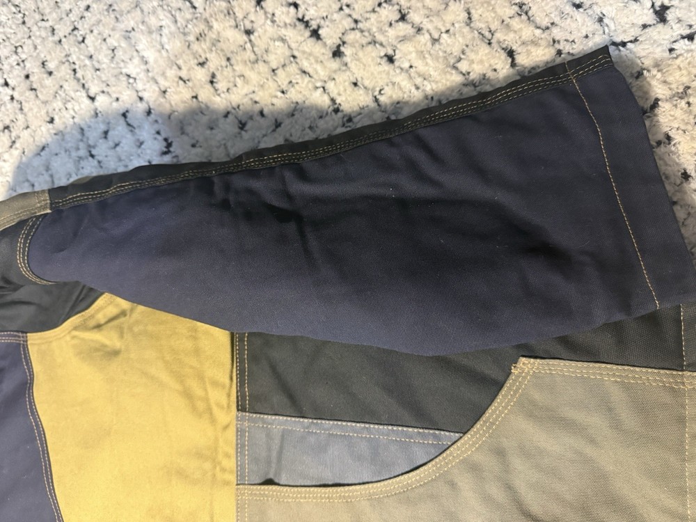 The Carhartt Patchwork Jacket is a stylish and unique reworked canvas bomber jacket for men in size M. Made from durable cotton material with a multicolor patchwork design, this jacket combines functionality with a trendy style. The classic bomber jacket silhouette and canvas fabric give it a rugged yet fashionable look, perfect for everyday wear. With the reputable Carhartt brand ensuring quality and durability, this jacket is a versatile addition to any man's wardrobe.