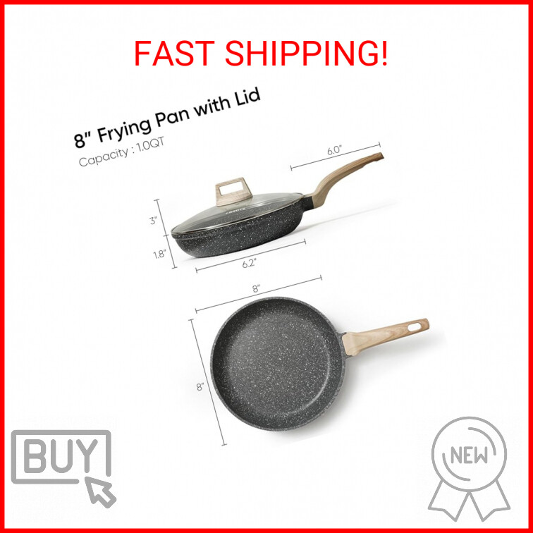 Welcome CAROTE Non Stick Frying Pan Skillet, 8" Nonstick Fry Pan with Glass Lid, Egg Pan Omelet Pans, Granite Cookware, PFOA Free (Classic Granite, 8-Inch) - Eco-friendly Granite Nonstick Material: Nonstick granite material. Less oil needed & less smoke released, our frying pan provides your daily cooking always safer and healthier. Excellent non stick performance keeps food sliding smoothly along the surface for easy clean. - Heat Up Quickly and Evenly: The induction frying pan adopts large magnetized base and provides a larger heating area, which allow to distribute heat quickly and evenly resulting in no hot spots. Suitable for gas, electric, ceramic, glass, halogen and induction hobs. With extended bottom design, our cookware heats up faster compared with the traditional skillet pan. - An Frequently-used Cooking Pan: Our nonstick frying pan can be used for any cooking needs : egg pan/ omelet pan/ grill pan ... a perfect fry pan is the best cooking partner for you, with heavy gauge and extra long-lasting die-cast construction, makes the skillet pan break resistant, anti-warping and chip-resistant. - Heat-resistant Handle: All-in-one design, no rivets and installation-free, avoids rust and easy to clean. Bakelite handle is comfortable to grip and stay cool while cooking and prevent handle burning and discoloring. The sturdy handle aids in lifting, and provides a hole for hanging when not in use. - SERVICE & GUARANTEE: CAROTE has over 25 years experiences in non-stick cookware, in case you receive defect or damaged frying pan by shipping, please feel free to contact us, we will address your concern within 24 hours and all cookware is guaranteed to get 100% refund or new replacement. The Fine Print Payments We accept the following payment methods: eBay Managed Payments Please pay as soon as possible after winning an auction, this will allow for quicker shipping times! Returns We accept returns. You can return unopened items in the original packaging within 30 days of your purchase with receipt or proof of purchase. If 14 days or more have passed since your purchase, we cannot offer you a refund or an exchange. Upon receipt of the returned item, we will fully examine it and notify you via email, within a reasonable period of time, whether you are entitled to a return. If you are entitled to a return, we will refund your purchase price and a credit will automatically be applied to your original method of payment. Only regular priced items may be refunded. Sale items are non-refundable. Shipping Shipment processing time All orders are processed within 2-3 business days. Orders are not shipped or delivered on weekends or holidays. If we are experiencing a high volume of orders, shipments may be delayed by a few days. Please allow additional days in transit for delivery. If there will be a significant delay in shipment of your order, we will contact you via email or telephone. Shipping rates & delivery estimates Shipping charges for your order will be calculated and displayed at checkout.