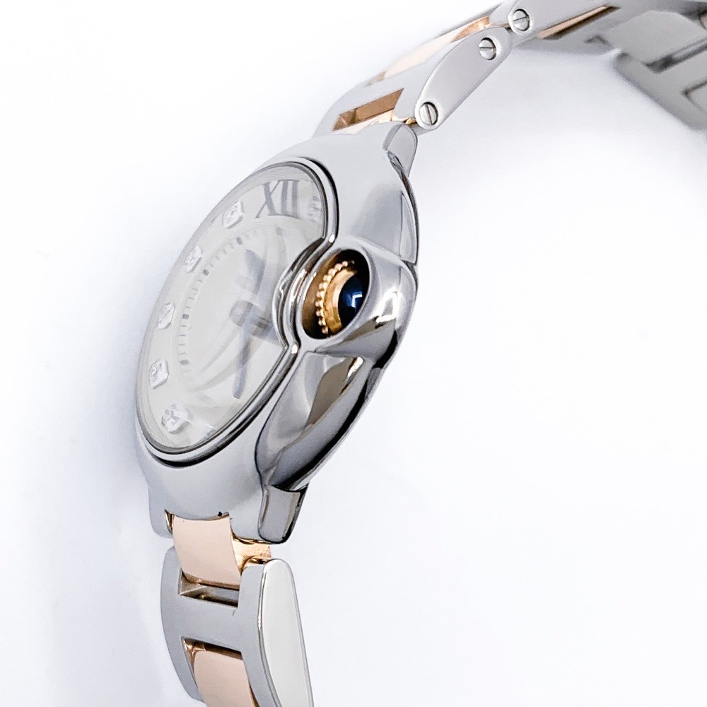 【Brand name】 CARTIER/Ballon Bleu de Cartier 1.1" Stainless Steel and Pearl Gold bracelet 【Comment】 The Ballon Bleu de Cartier features an impressive, rounded shape. Its 1.1" size fits naturally on the wrist, creating an elegant and soft atmosphere. The combination of stainless steel and pink gold creates just the right amount of elegance and sophistication, making it suitable for a wide range of occasions, from everyday wear to formal occasions. The understated coloring makes it suitable for any fashion or occasion. The smooth case lines unique to Ballon Bleu and the protective crown give this watch the refined feel you expect from Cartier. This model is recommended for those looking for a design that will last a long time. Our in-house first-class watch repair technicians carefully replace the battery, check the operation, and polish the exterior. Each process is checked before delivery, so you can enjoy your watch right away with peace of mind after purchase. 【Data】 ・Inquiry No.…K51222B ・Brand…CARTIER/quartz ・Condition...Battery replaced、Polished finish、S-rank ・Model No.…WE902030(3009) ・Serial…788※※※※※ ・Color…combination ・Material…Belt/K18xSS ・Size(mm/cm)…Case/W28mm、Bracelet/15.4cm up to ・Size(inch)…Case/W1.1inch、Bracelet/6.1inch up to ・Belt…Genuine Cartier bracelet ・Accessory…Cartier genuine case、booklet、Our guarantee ・Control No.…C0150116 【Attention】 ・Some areas appear dark and in shadow due to the shooting environment. ・The colors and textures in the photos may differ from the actual product depending on the external environment and your device. Please Note Please click the photos to enlarge, check each photo very carefully for its details. International Buyers Import duties, taxes, and charges are not included in the item price or the shipping cost. These charges responsibilities will rest with the buyers. Please check with the customs office in local to determine what these additional costs will be before bidding or buying. Other information the seller may like to remind: These charges are normally collected by the freight (shipping) company or when you pick the item up, please do not confuse them with additional shipping charges. We do not lower the values of the items or describe the items as gifts. According to the regulations of the US and the International government, this conduct is prohibited. The dispatch method All Items are sent from Japan. The package with tracking number is covered by shipping insurance. Please note: Items may be required import duties, taxes, and additional charges. The recipient of the shipment is the importer on recording, who is responsible for all import fees in the destination country. If you have any questions about import duties and taxes, please contact your local customs office before buying and bidding. Return Policy Due to the nature of branded products, we do not accept returns or exchanges after the product has been shipped. Please check the product details before purchasing. In addition, our store's appraisers conduct strict double authentication to determine the authenticity of the product. We do not handle any counterfeit products. Although there have been no cases in the past, if the product is determined to be a counterfeit, we will refund the full amount. SHIPPING FREE delivery! Postage is free for the order by "buy it now",but postage will be charged separately when it is auction. We offer you worldwide FREE Shipping.Express Mail Service(EMS) or DHL with Tracking number provided. CONTACTS Please contact us via eBay message. If you have any problem or question, please contact us ASAP.