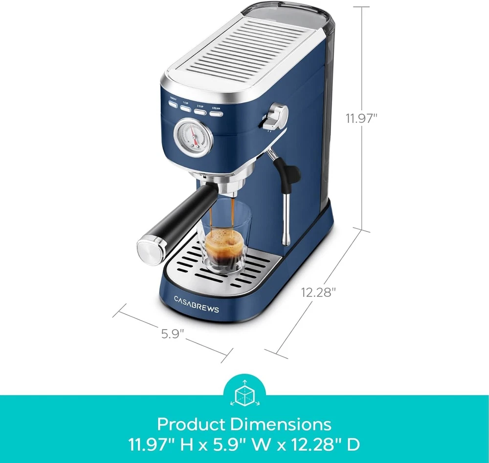 Package: 1X CASABREWS Espresso Machine 20 Bar, Professional Espresso Maker with Milk Frother Steam Wand, Espresso Coffee Machine with 34oz Removable Water Tank, Gift for Coffee Lovers, Coffee Gift, Sapphire Blue Description: Make Your Favorite Espresso Coffee At Home: The CASABREWS coffee machine with milk frother allows you to prepare all your favorite espresso-based coffees. You can enjoy a barista-brewed latte, cappuccino or macchiato at home. Stainless steel appearance, stylish and durable, ideal for any size kitchen. This compact espresso coffee maker is perfect for home or office use Professional 20 Bar Pressure System: Semi-Automatic 2-in-1 Espresso Maker, with 20 bar professional Italian pump and 1350 W powerful motor. This latte maker gives you top quality extraction, resulting in a more fragrant and rich aroma. The built-in pressure gauge on this compact espresso machine shows the exact pressure helping you make adjustments according to your personal taste preferences. You can create a cappuccino, latte or flat white at your home or office with our espresso coffee machine Milk Frothing System: Our espresso machines for home has a powerful steam wand, so you can texture creamy, rich microfoam milk to create amazing milk foam art and enhance the flavor of your brews. Awaken your inner barista and create your own unique milk foam art. Don't pass us by if you are looking for an excellent cappuccino machine COMPACT, STYLISH & PRACTICAL: The beautiful and compact design makes this coffee espresso maker suitable for any size kitchen. Make single or double espresso shots with a beautiful layer of crema in minutes! The 34 oz water tank allows you to brew multiple cups, and it is detachable for easy refilling. Included components: Espresso Machine, 34 oz Removable Water Tank, One Cup Brewing Filter, Two Cup Brewing Filter, Portafilter, Tamper With Spoon, Instruction Manual Useful Tips: Please kindly note that do not brew coffee immediately after frothing milk. The machine must cool down first otherwise the temperature and the pressure inside the machine will be too high, and the machine will go into over-heating protection mode. The lights for 1 cup or 2 cup will flash repeatedly and please follow the steps of included guide to cool down the machine. (1)Thank you for your interest. (2)Please DO NOT LEAVE NEGARTIVE or NEUTRAL FEEDBACK or OPEN ANY CASES before contact us. (3)Please feel free to contact us through eBay Inbox if you have any question,such as tracking numbers, shipping status ect.... (4)Sometimes, we will update the status of your order,please check your message time by time.. Thank you very much,enjoy your shopping!