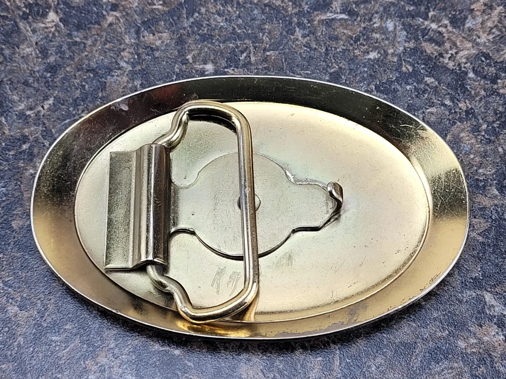This belt buckle is approximately 9.5 cm x 6 cm.