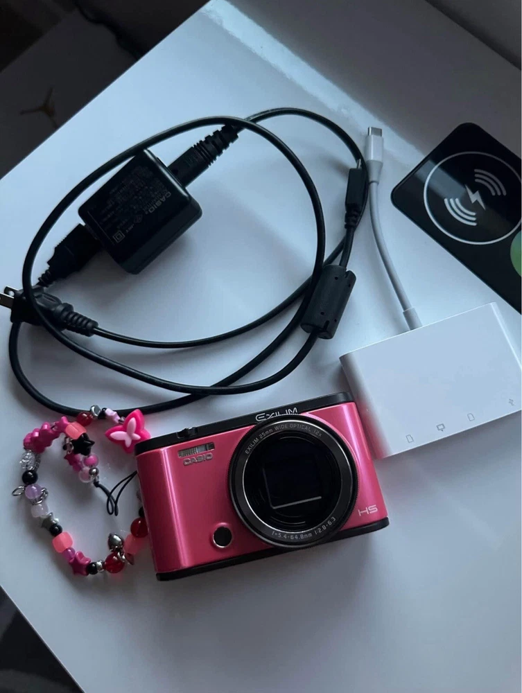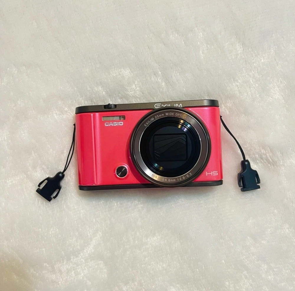 Come with memory card, card reader and charger. Like new, no scratches, connect to wifi and connect to phone through app CASIO EXILIM EX-ZR3000 is a compact digital camera from the Casio EXILIM ZR series, featuring a 12.1 MP maximum resolution. It comes in a stylish pink color and offers a 12x digital zoom and 12.5x optical zoom. The camera is powered by a lithium battery and is suitable for various photography needs. This specific product is black and listed as used. This Casio digital camera features a vibrant pink color and a compact point-and-shoot design, making it perfect for casual photography. Its large circular lens enhances image quality, while the sleek body ensures portability for everyday use.